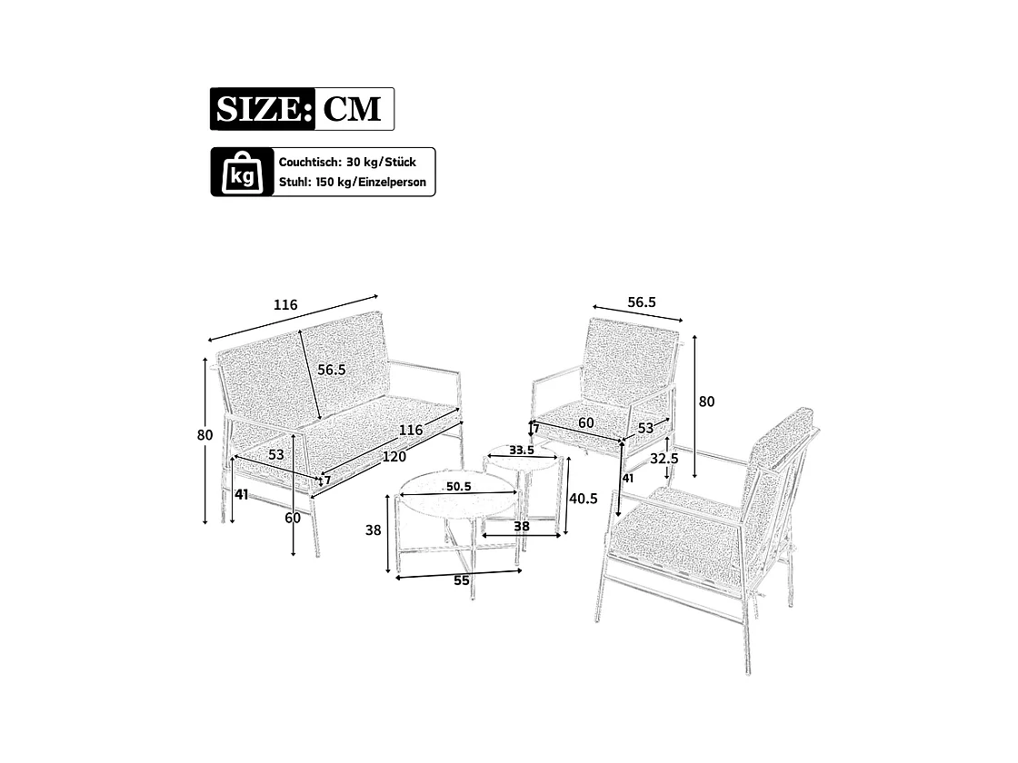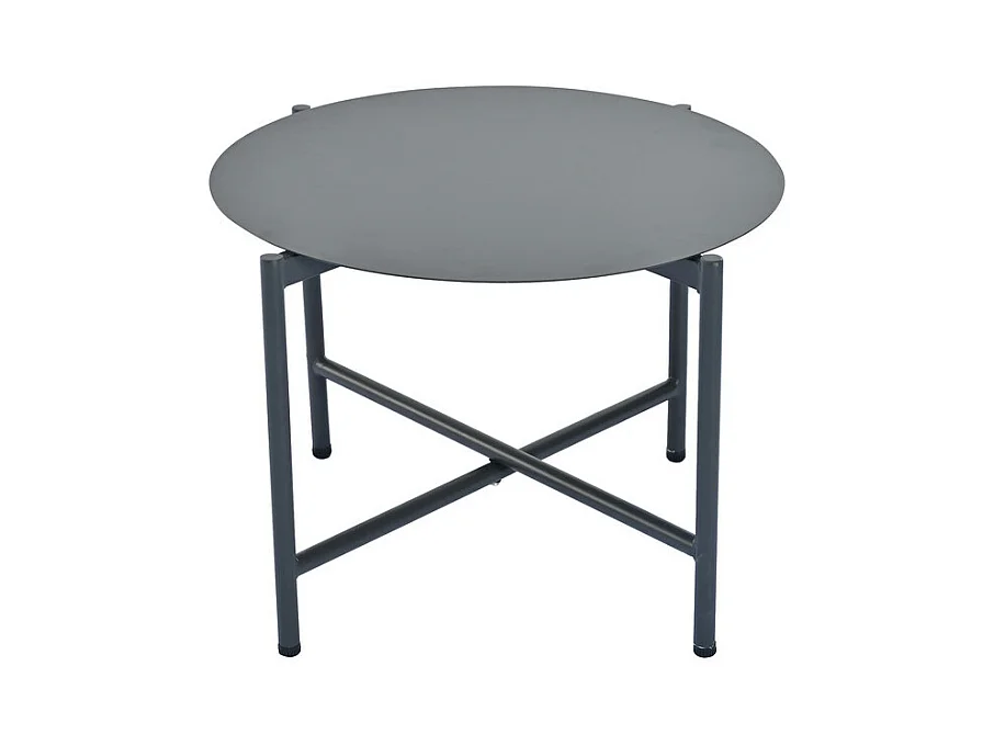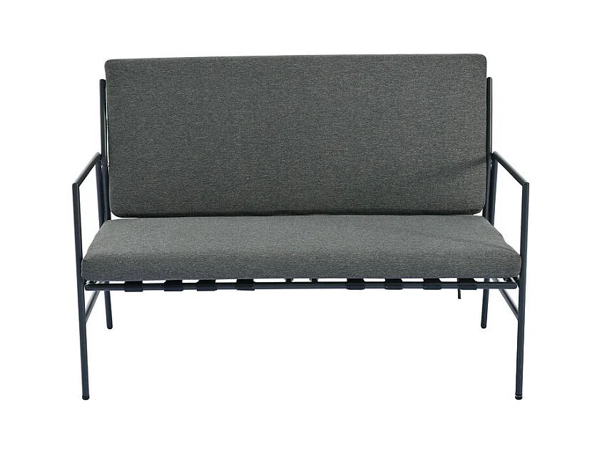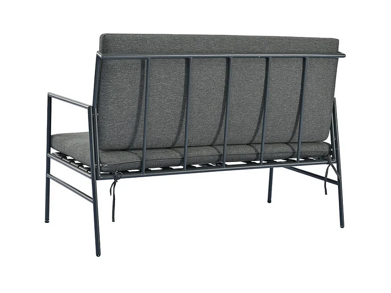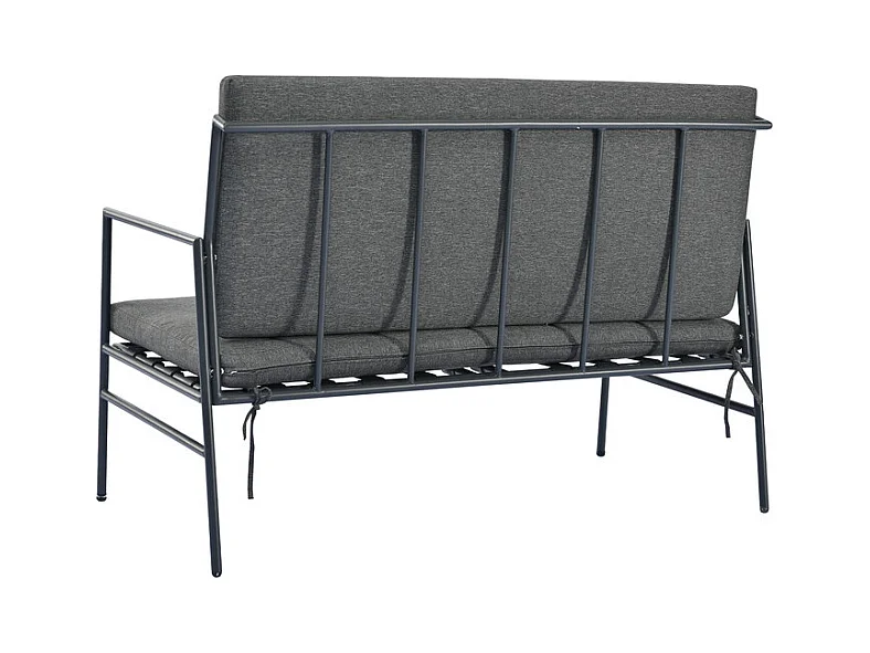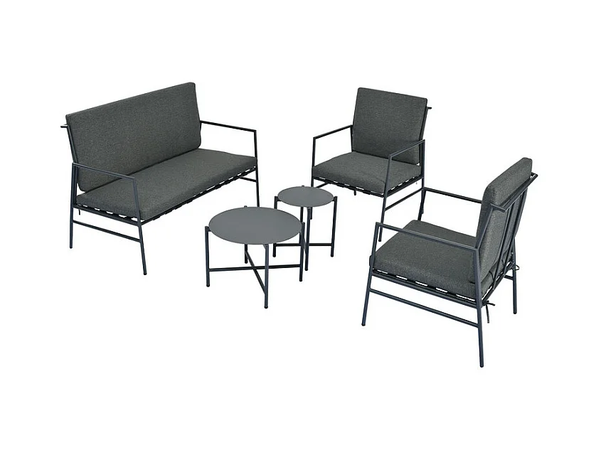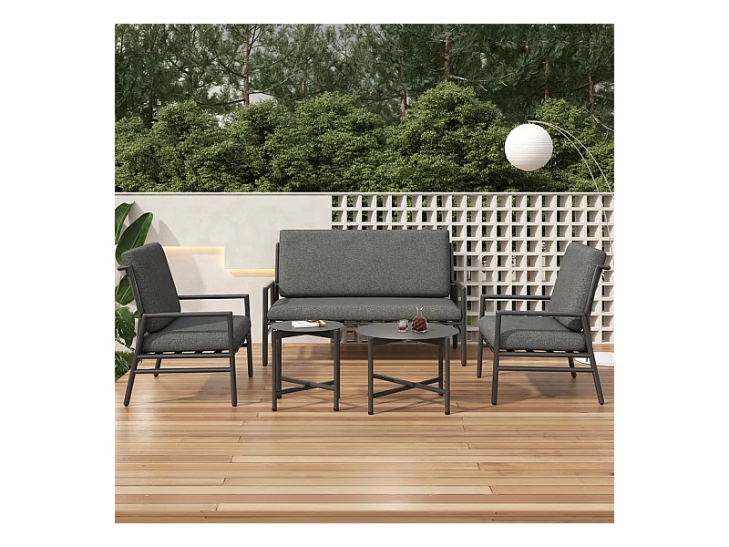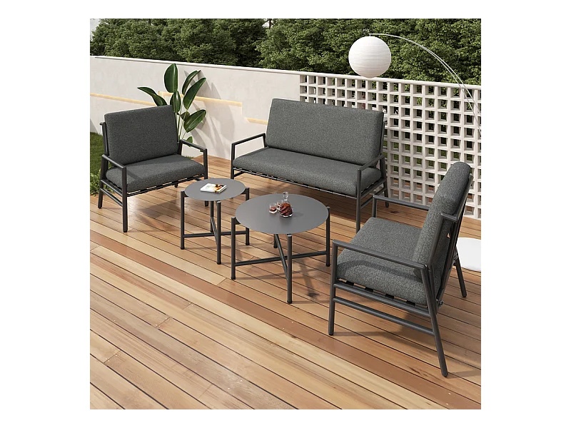 Salon de jardin en acier galvanisé - canapé 2 places + 2 fauteuils + 2 table basse rondes - avec coussin gris