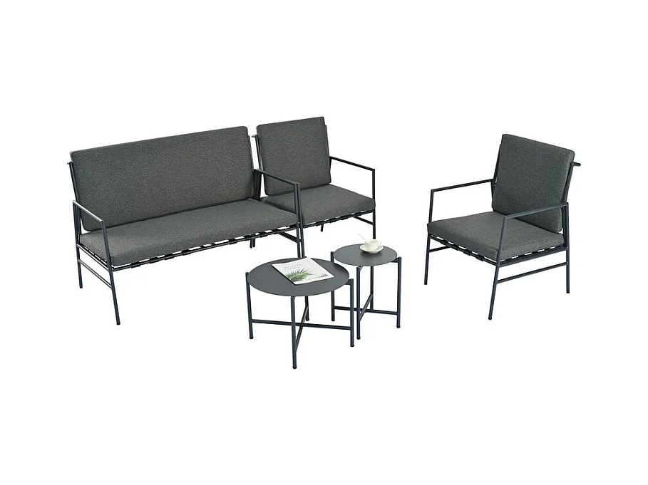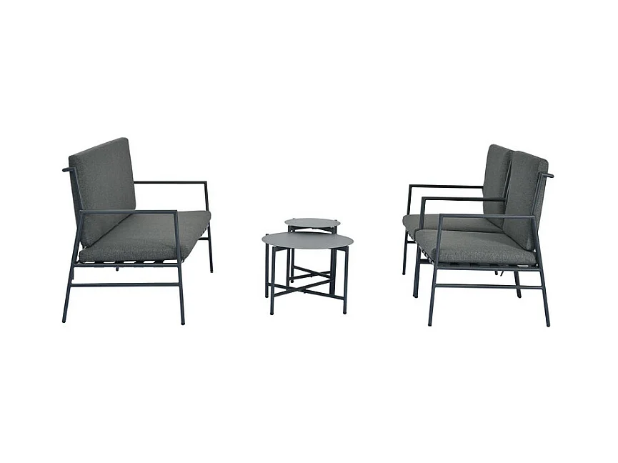 Salon de Jardin en Acier galvanisé noir - 4 places - canapé,2 fauteuils et 2 tables basses - Gris