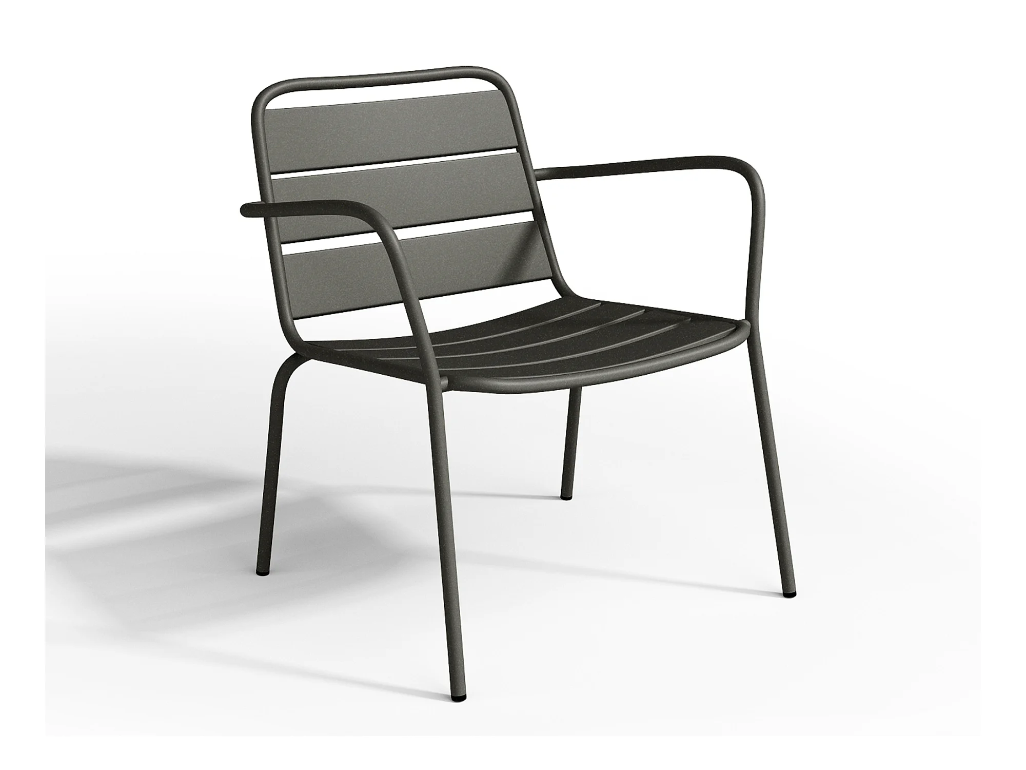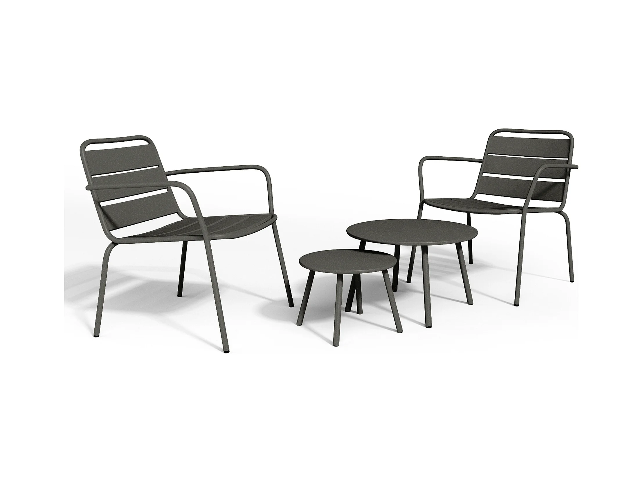 Salon de jardin en métal - 2 fauteuils bas empilables et tables gigognes - Gris anthracite - MIRMANDE de MYLIA