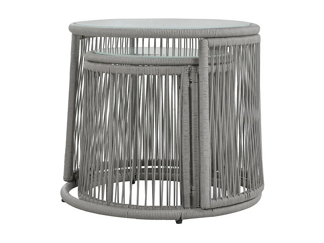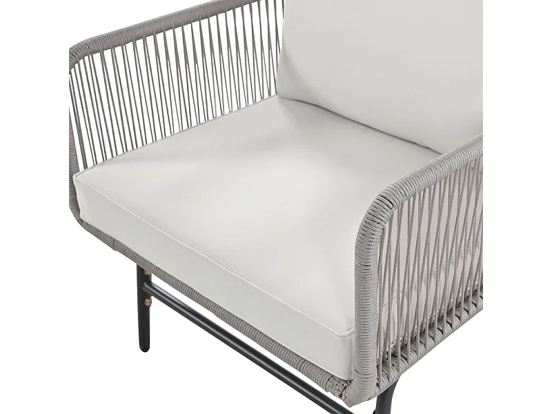 Salon de jardin en métal : canapé d'angle + 2 table basse rond + 2 fauteuils - avec coussins