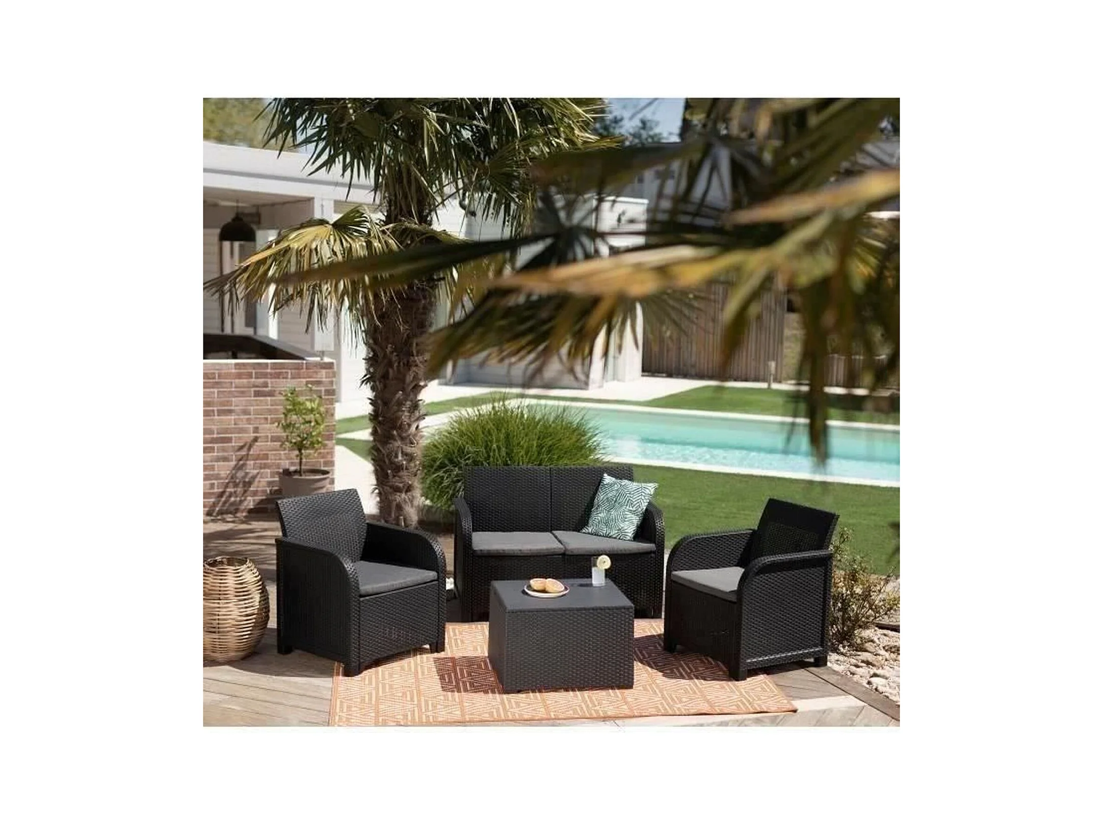Salon de Jardin 4 Places "Taromina" 176cm Noir