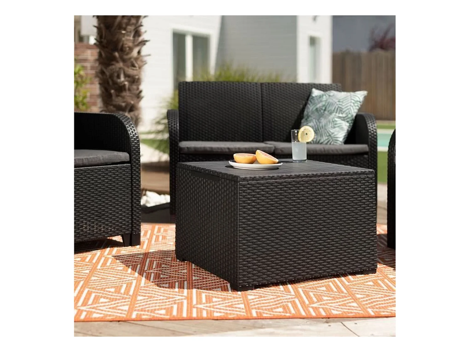 Salon de jardin 4 pcs avec coussins noir résine tressée SSG90059