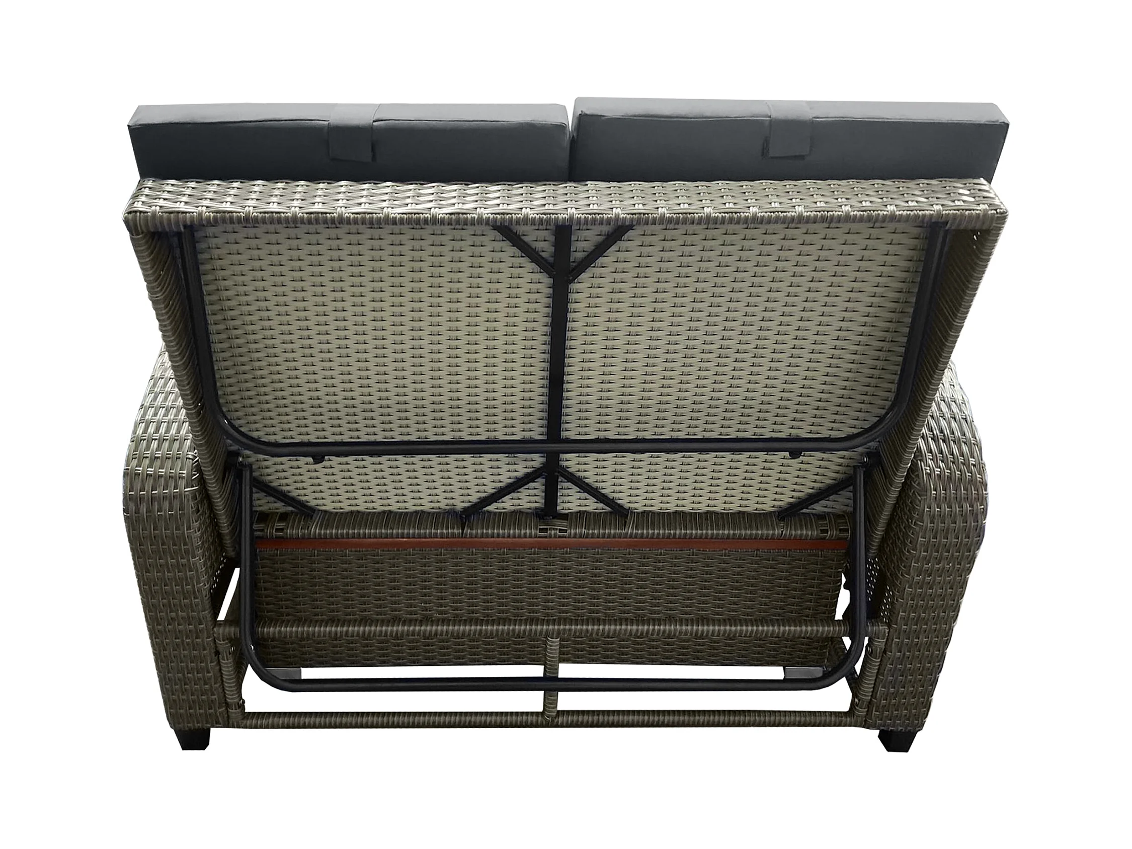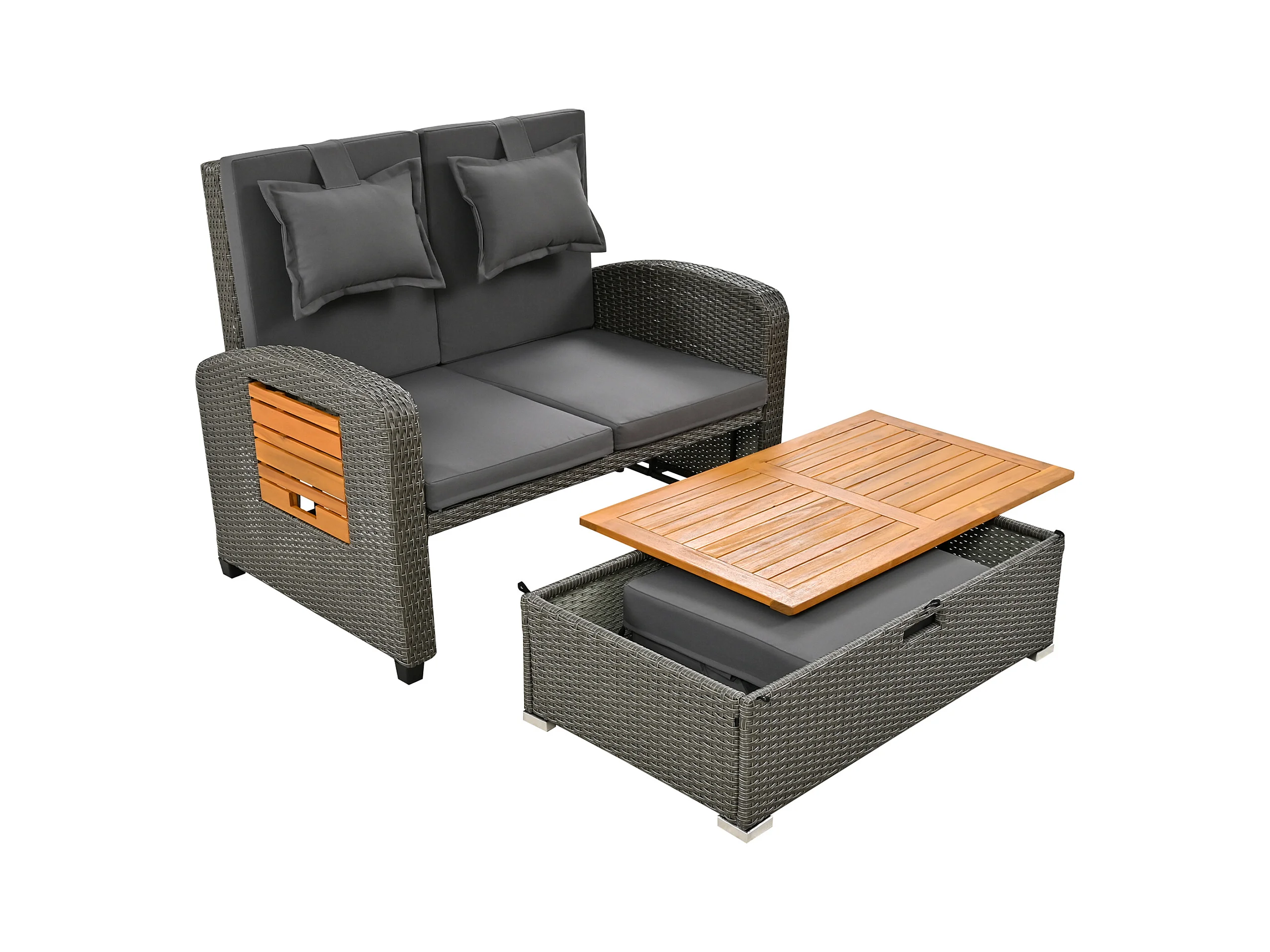 Salon de jardin en résine tressée gris 2 places - Dossier réglable - Coussin de dossier et d'assise + table basse multifonctionnel