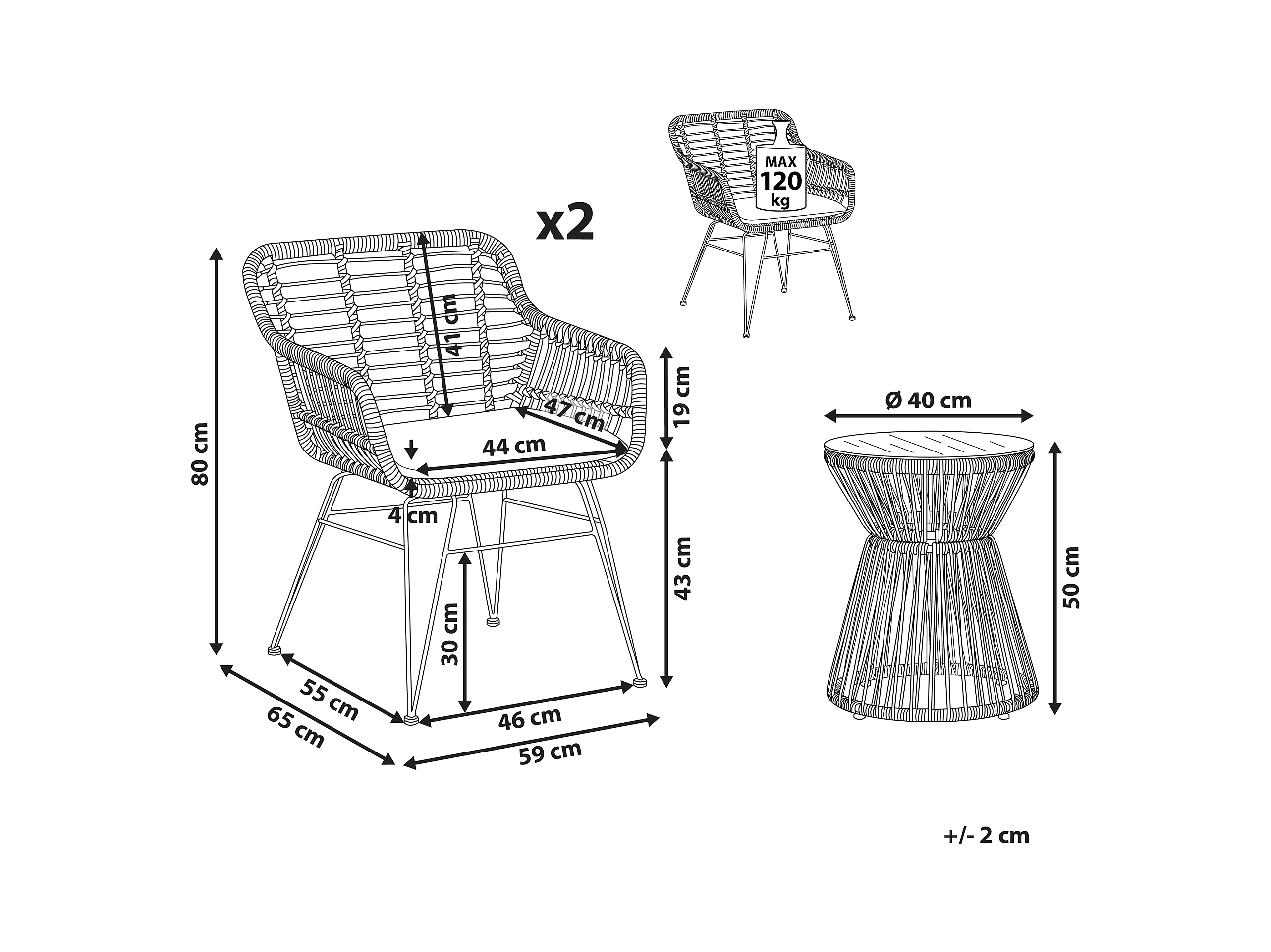 Ensemble pour bistro avec coussins TRESTINA Marron clair