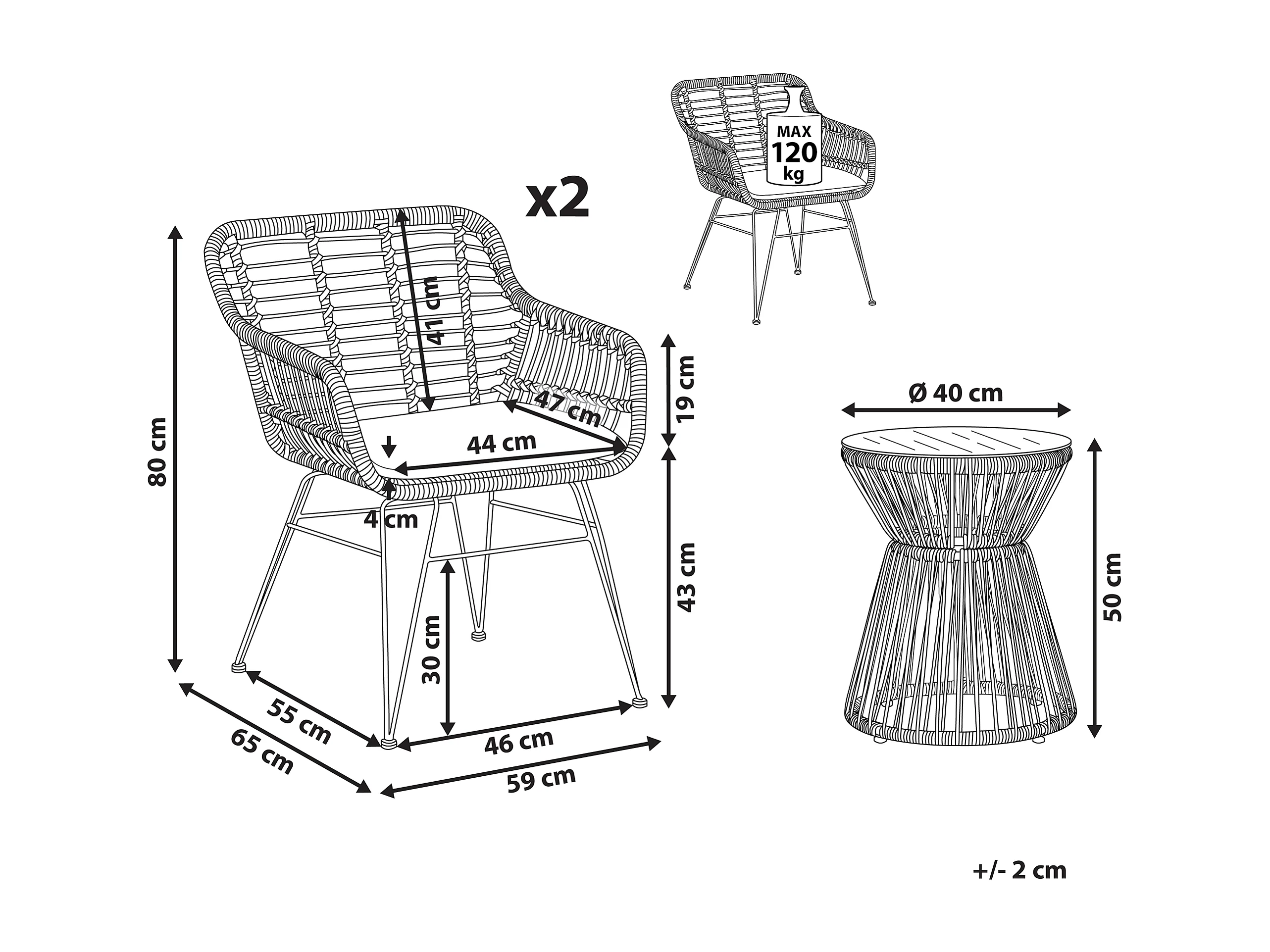 Ensemble bistrot avec coussins TRESTINA Marron clair