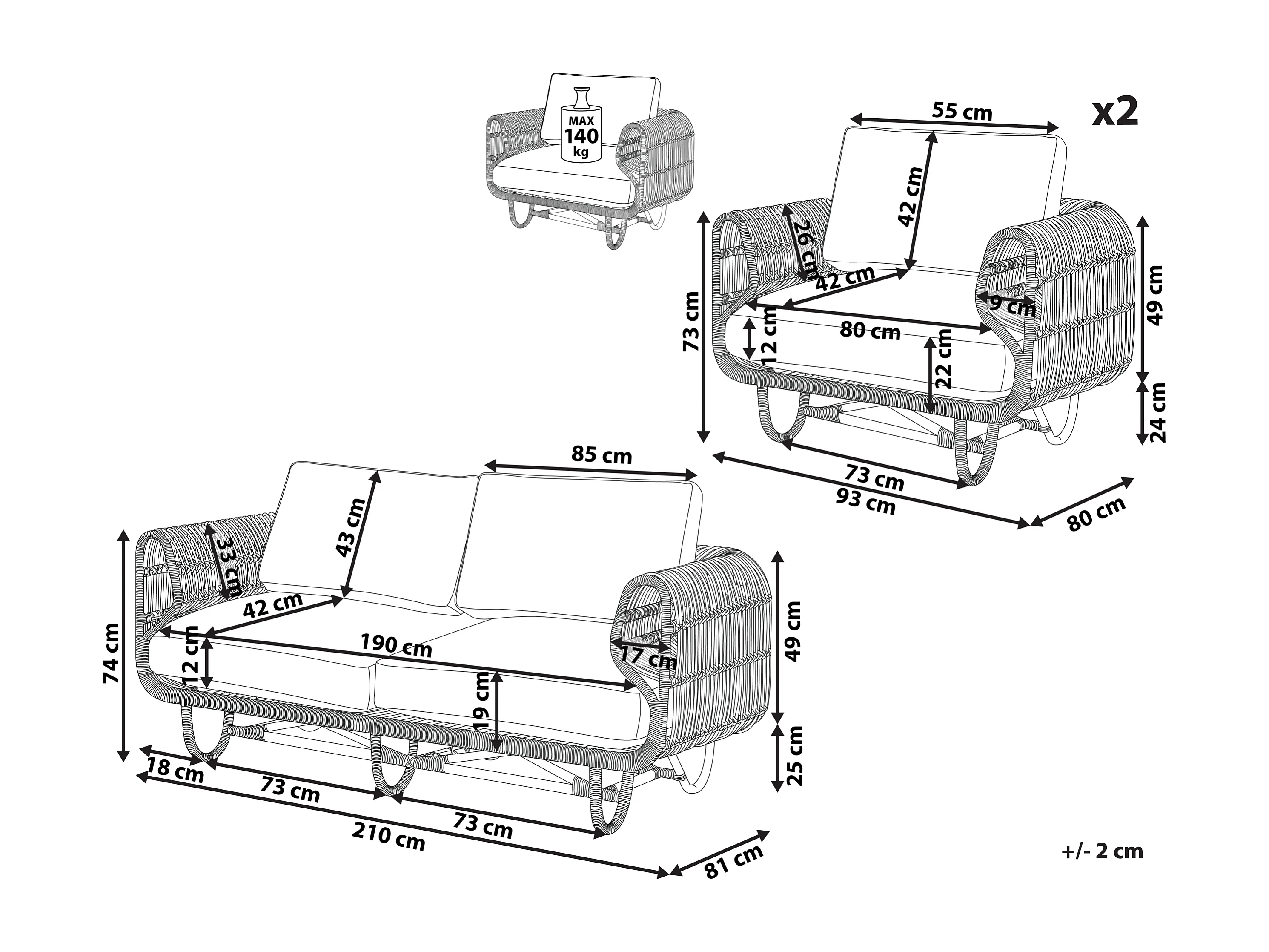 Ensemble de canapés de jardin 4 places DOLCEDO Rotin Beige
