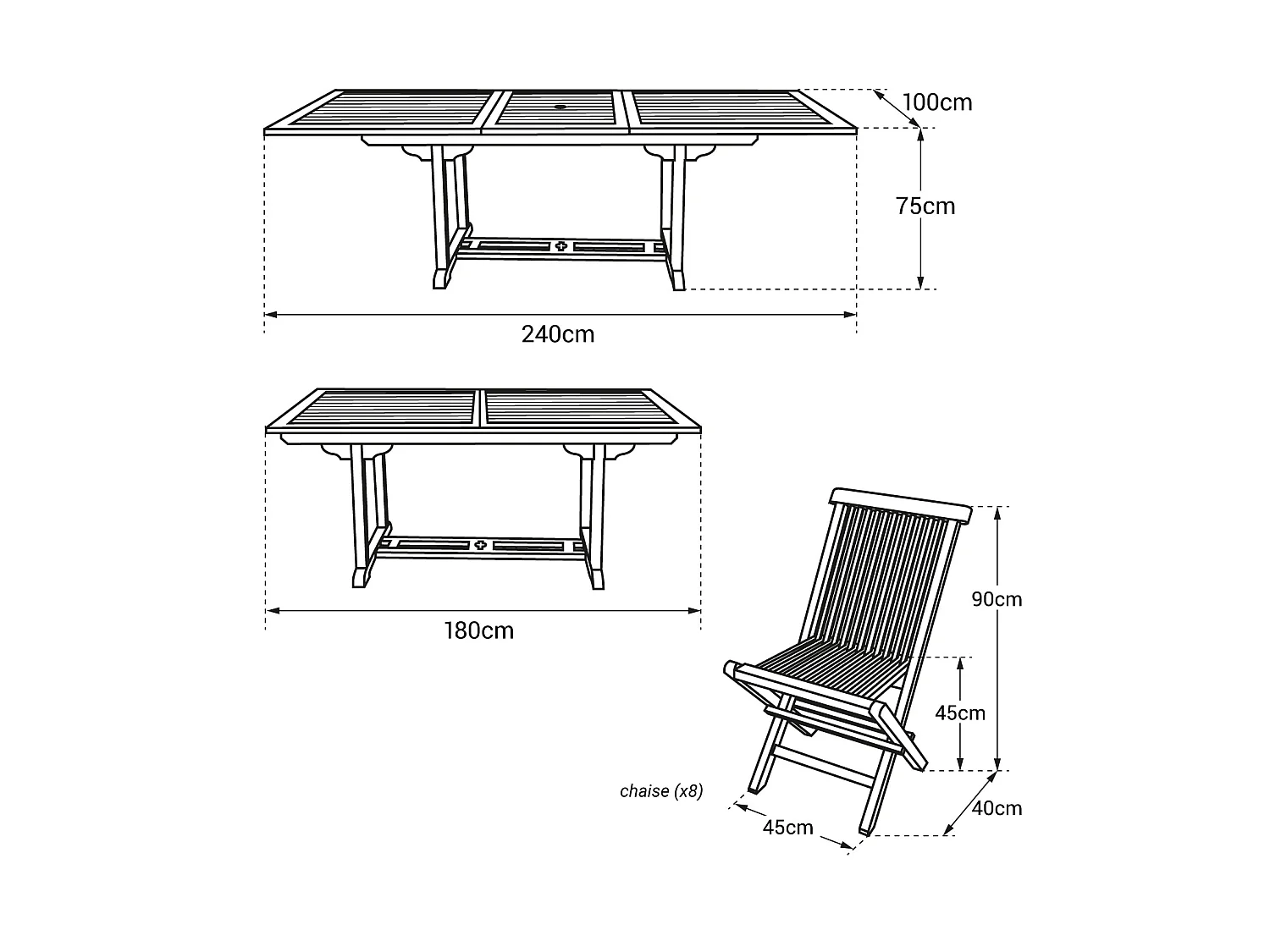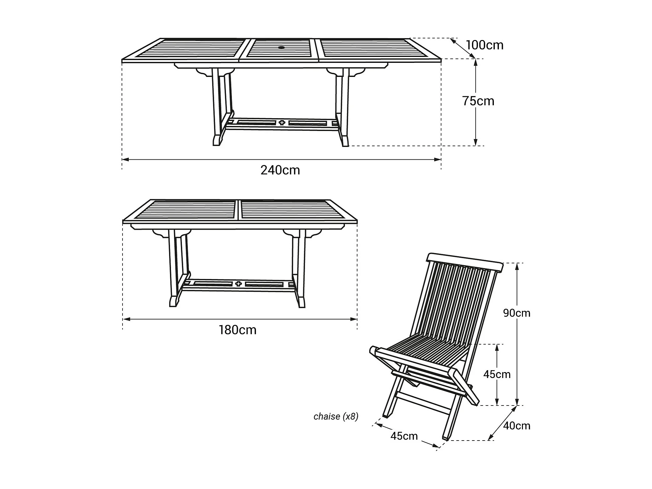 Salon de jardin en teck LOMBOK - table rectangulaire extensible - 8 places - HAPPY GARDEN