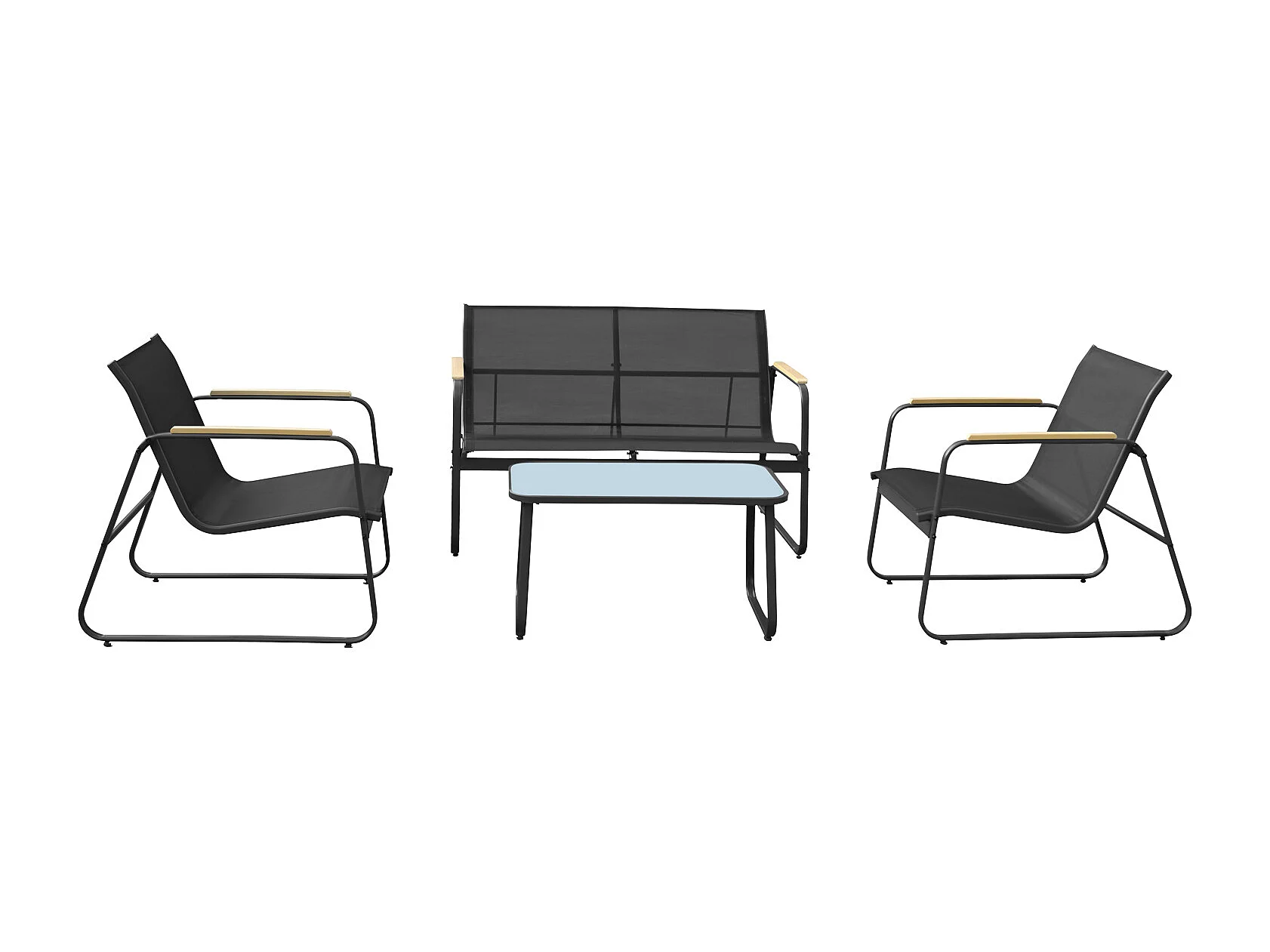 Salon de jardin en textilène 4 places noir TENERIFE - HAPPY GARDEN