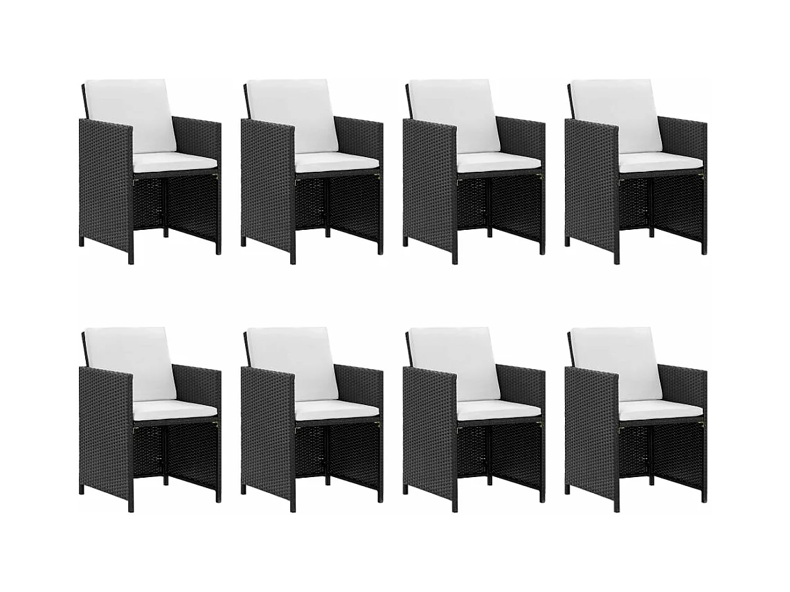 Salon de jardin 9 pièces avec coussins Résine tressée Noir