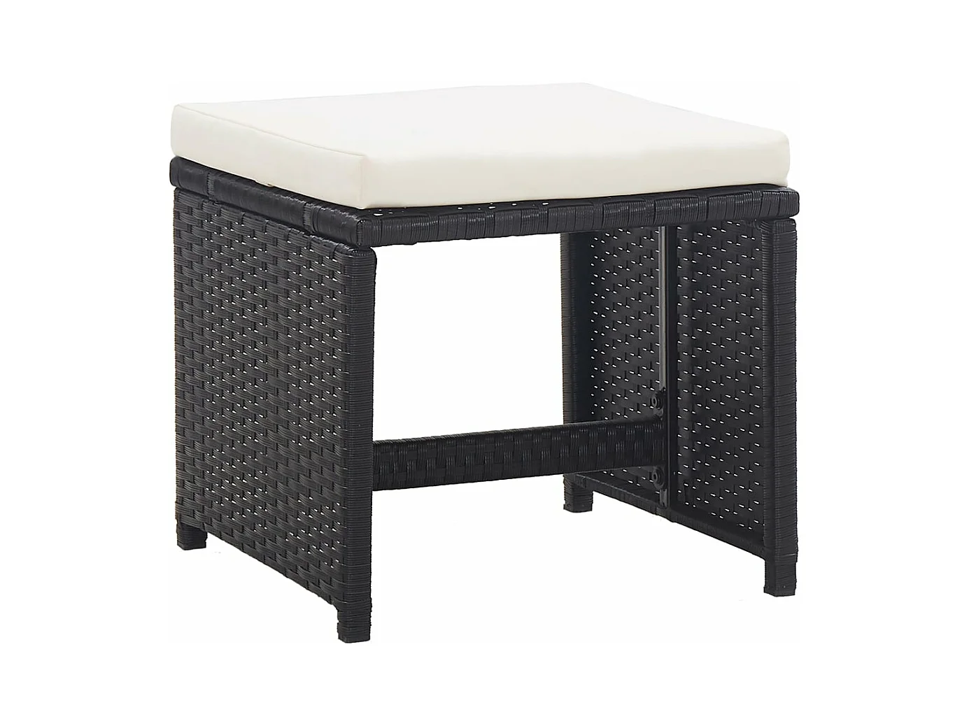 Salon de jardin encastrable 11 pièces et coussin Rotin naturel Noir