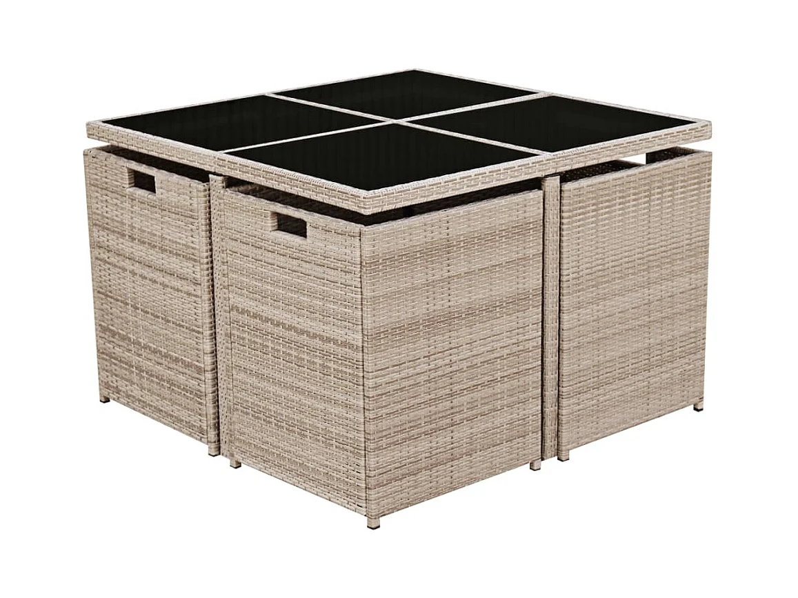 Salon de jardin encastrable avec coussins 9 pièces Rotin Beige