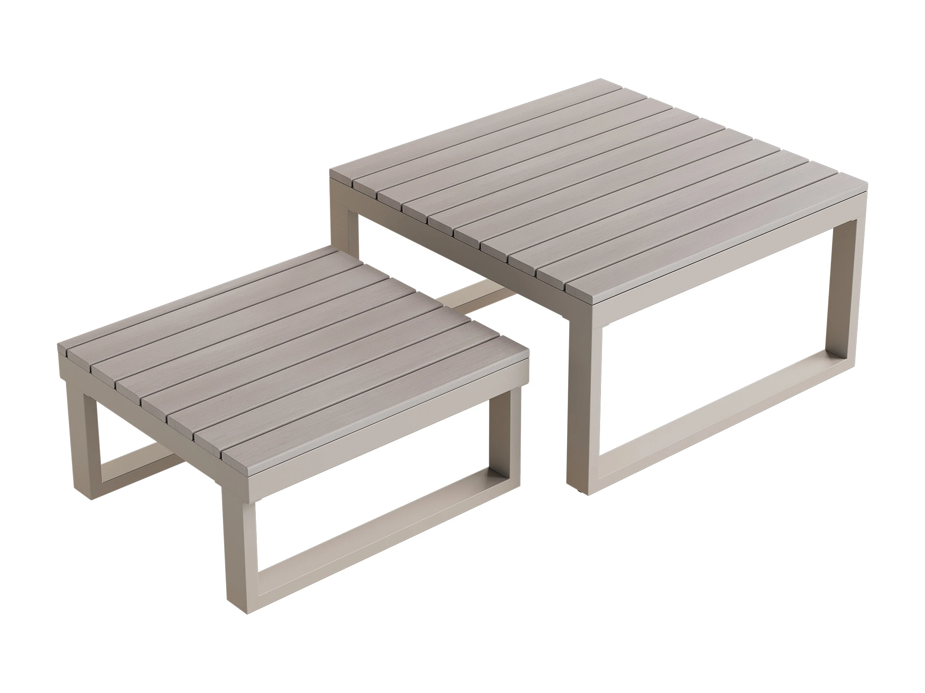 Salon de jardin - ensemble de meubles - 6 places - en acier galvanisé - canapé d'angle - 2 tables basses - plateau en bois plastique - Kaki