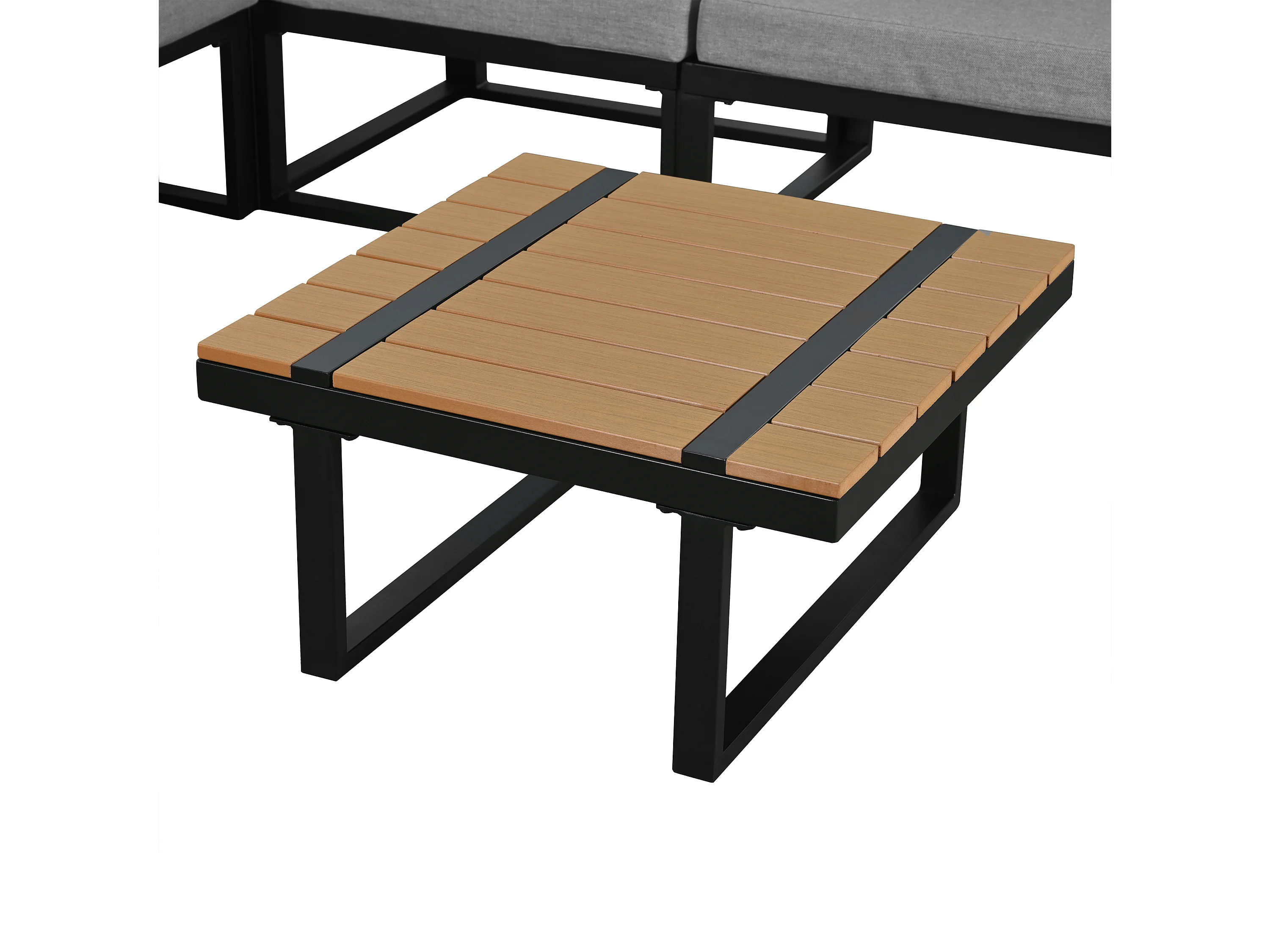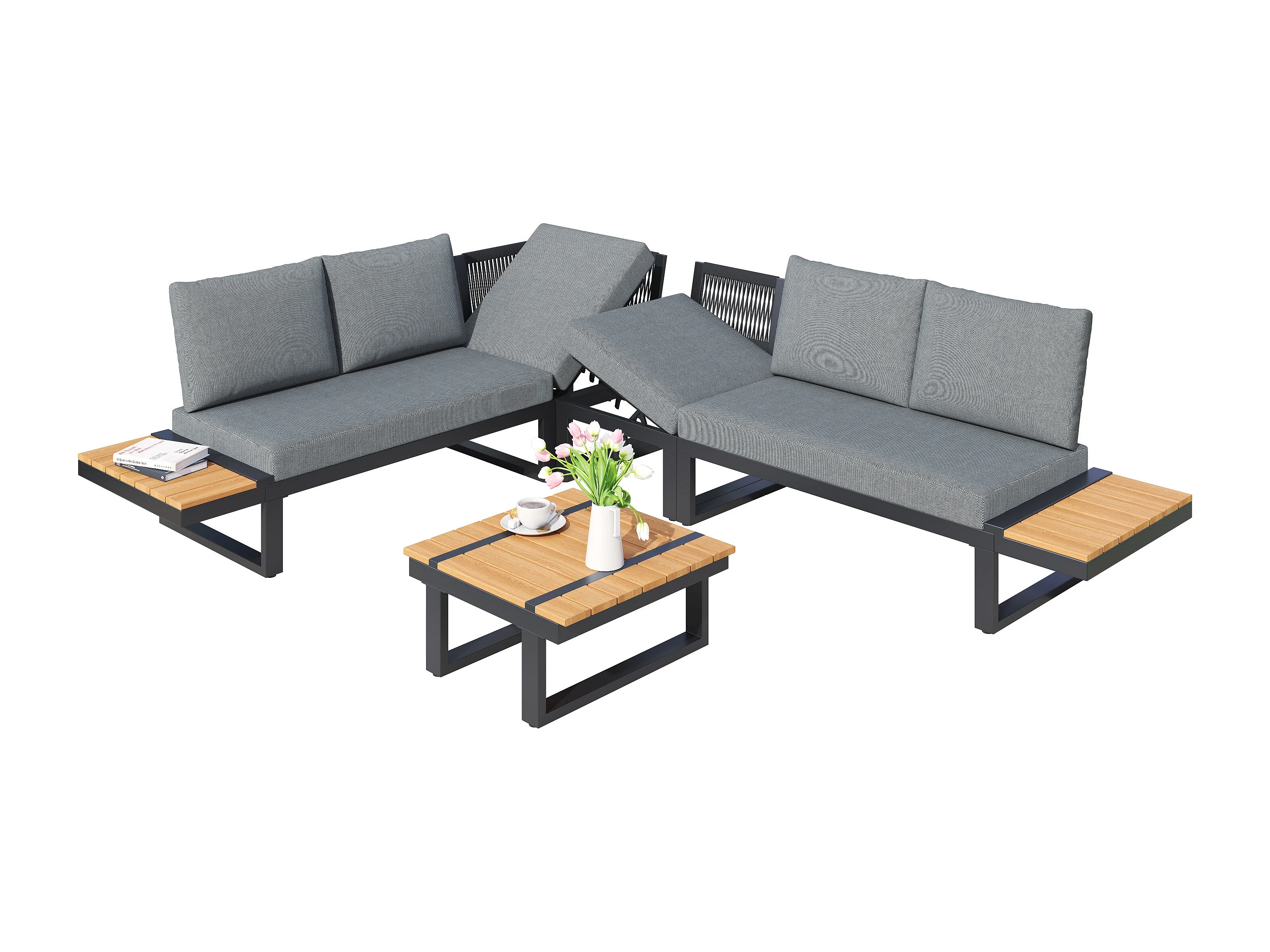 Salon de jardin - ensemble de meubles - 6 places - en acier galvanisé - canapé d'angle - avec table basse - plateau en bois plastique - Gris