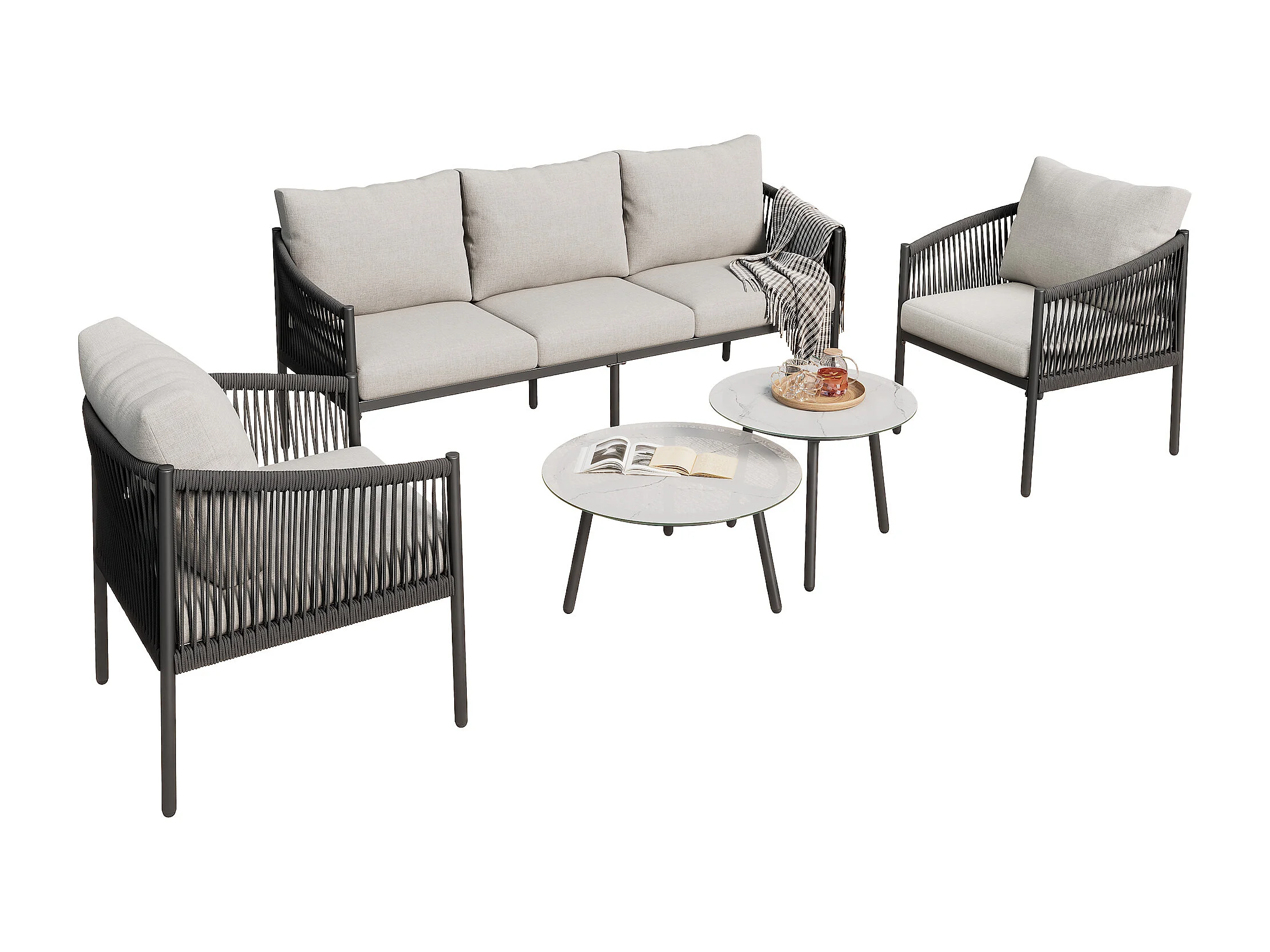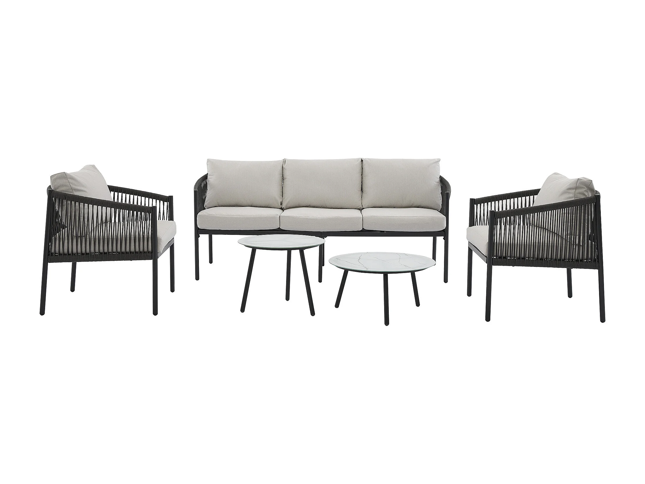 Salon de jardin, ensemble de meubles de jardin, canapé 3 places, 2 fauteuils et 2 tables basses, extérieur, acier galvanisé, gris