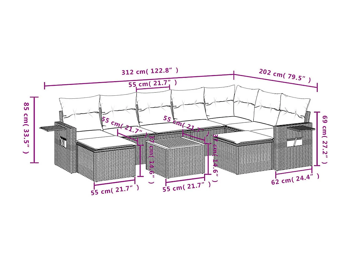 Salon de jardin et coussins 10 pcs mélange beige résine tressée