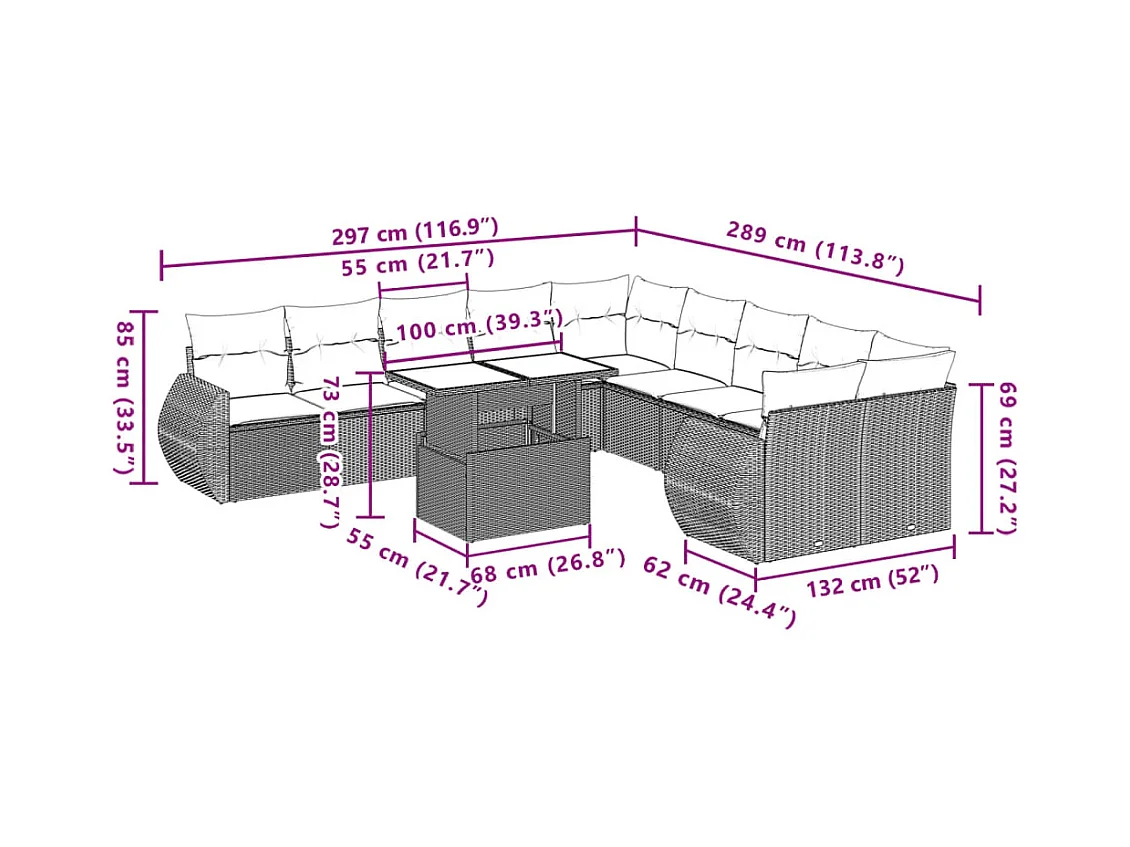 Salon de jardin et coussins 11 pcs marron résine tressée