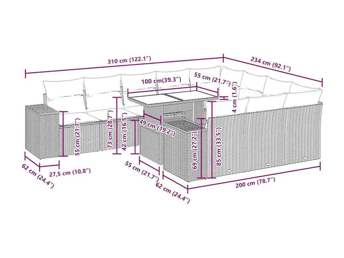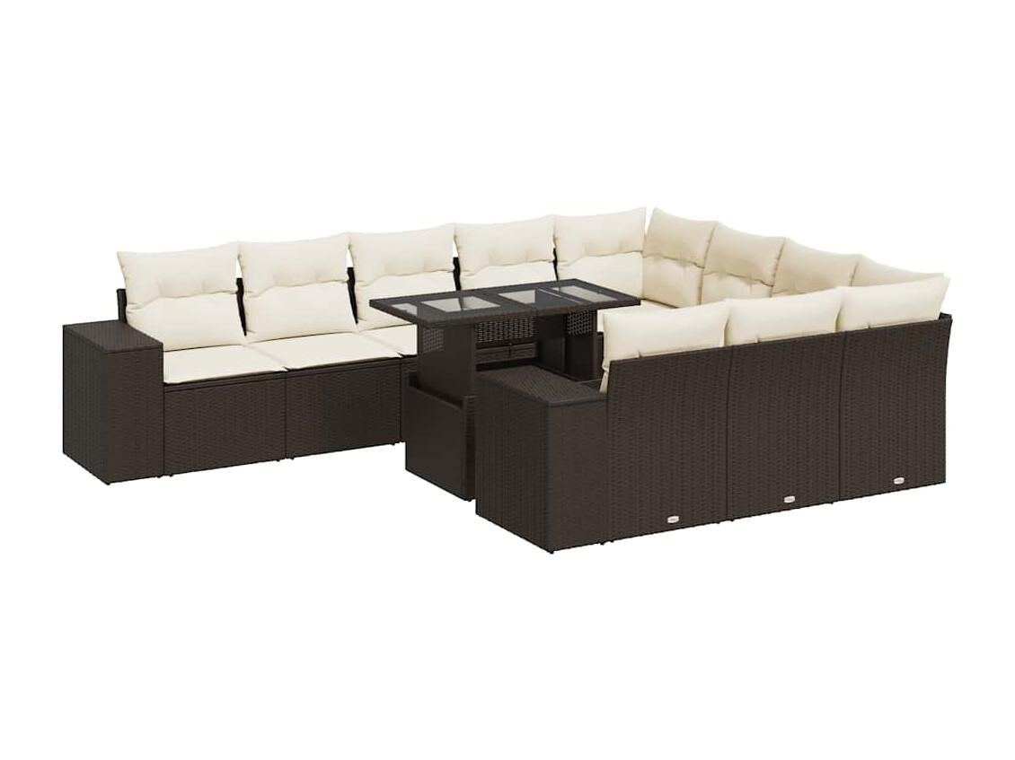 Salon de jardin et coussins 11 pcs marron résine tressée