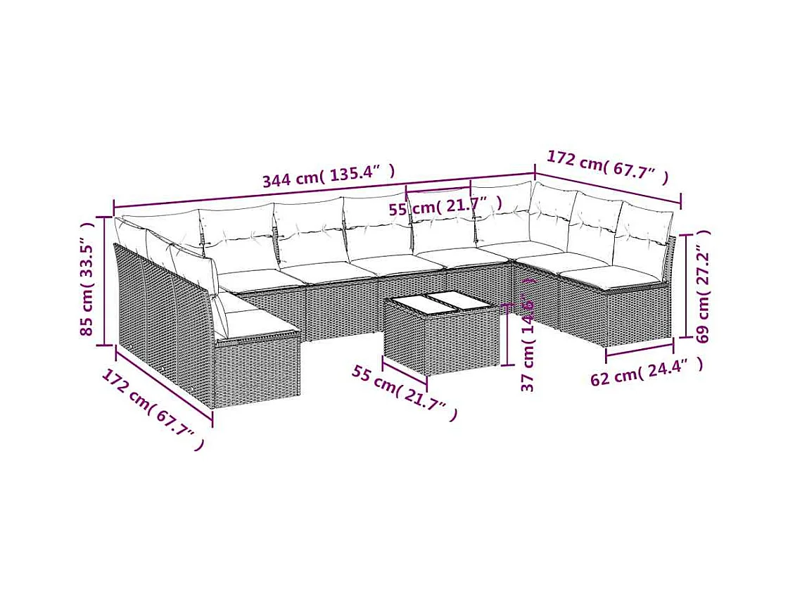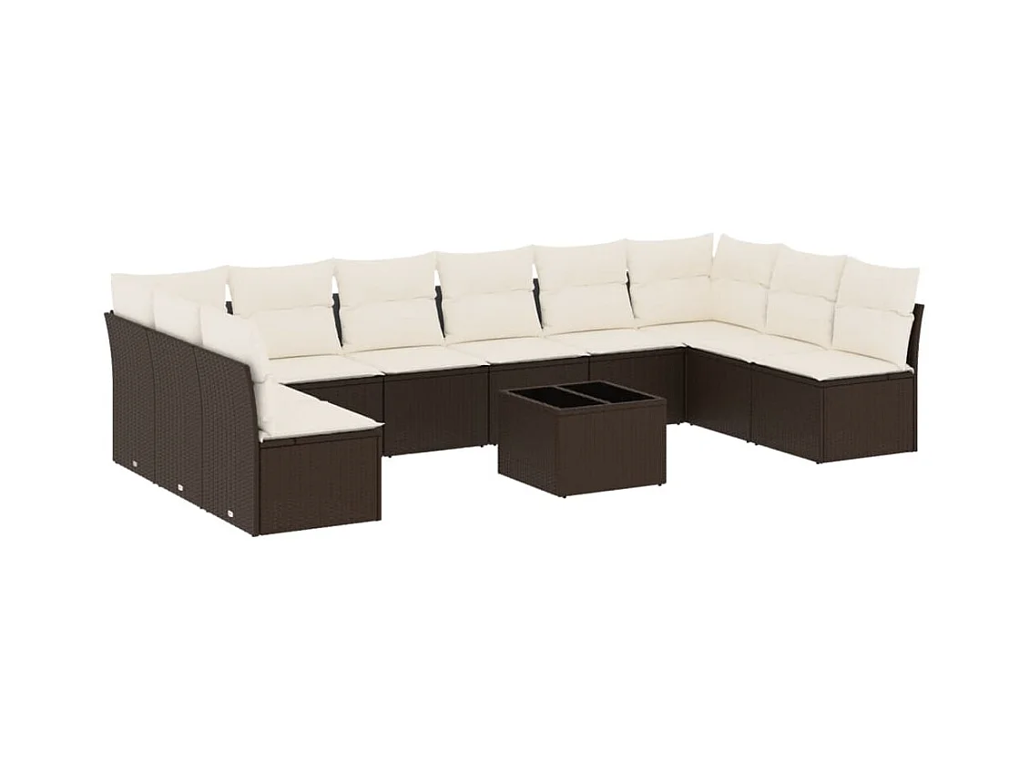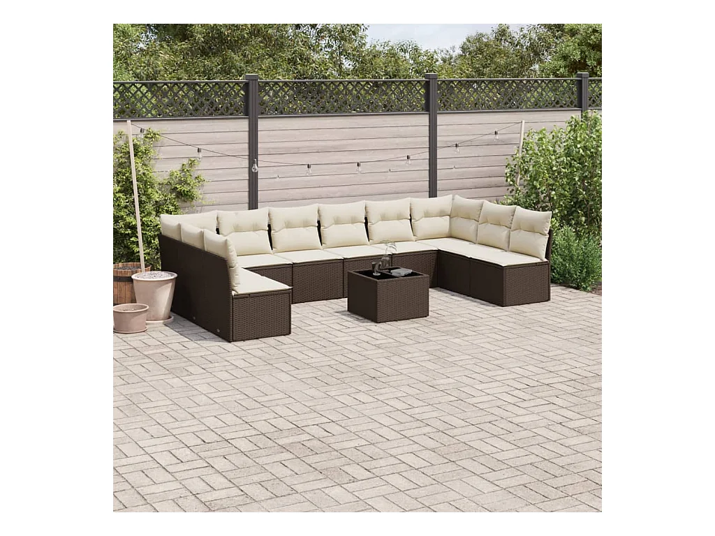 Salon de jardin 10 pcs avec coussins marron résine tressée