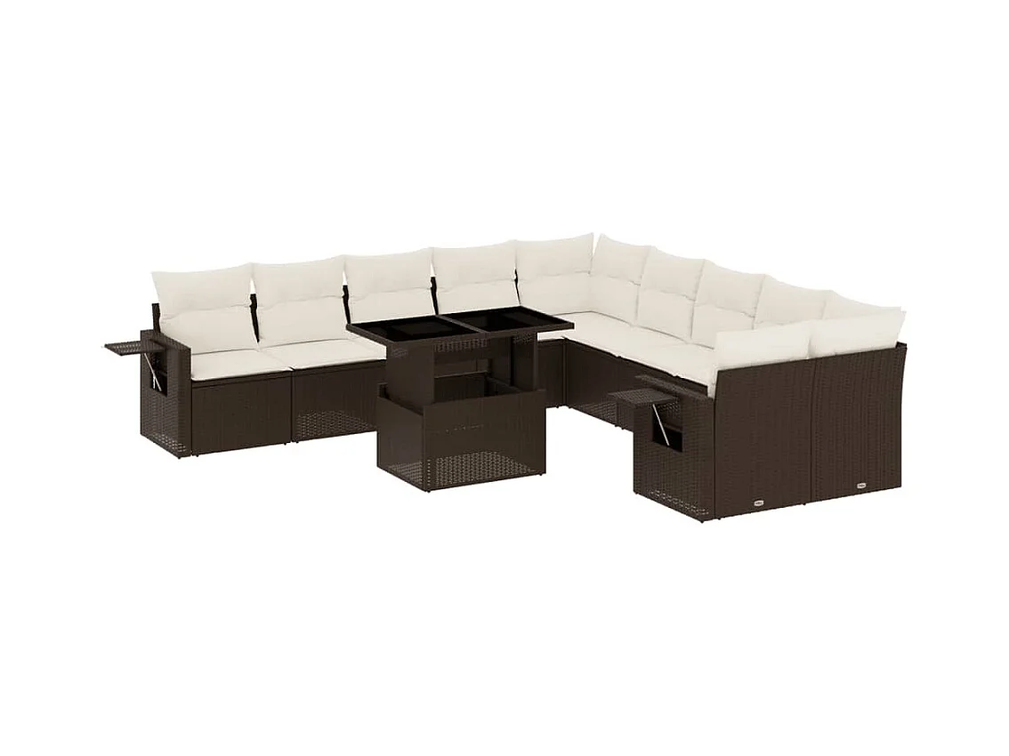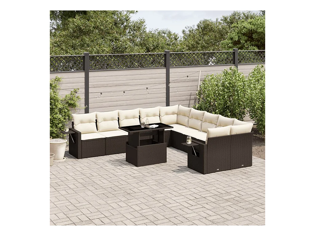 Salon de jardin 10 pcs avec coussins Résine tressée Marron