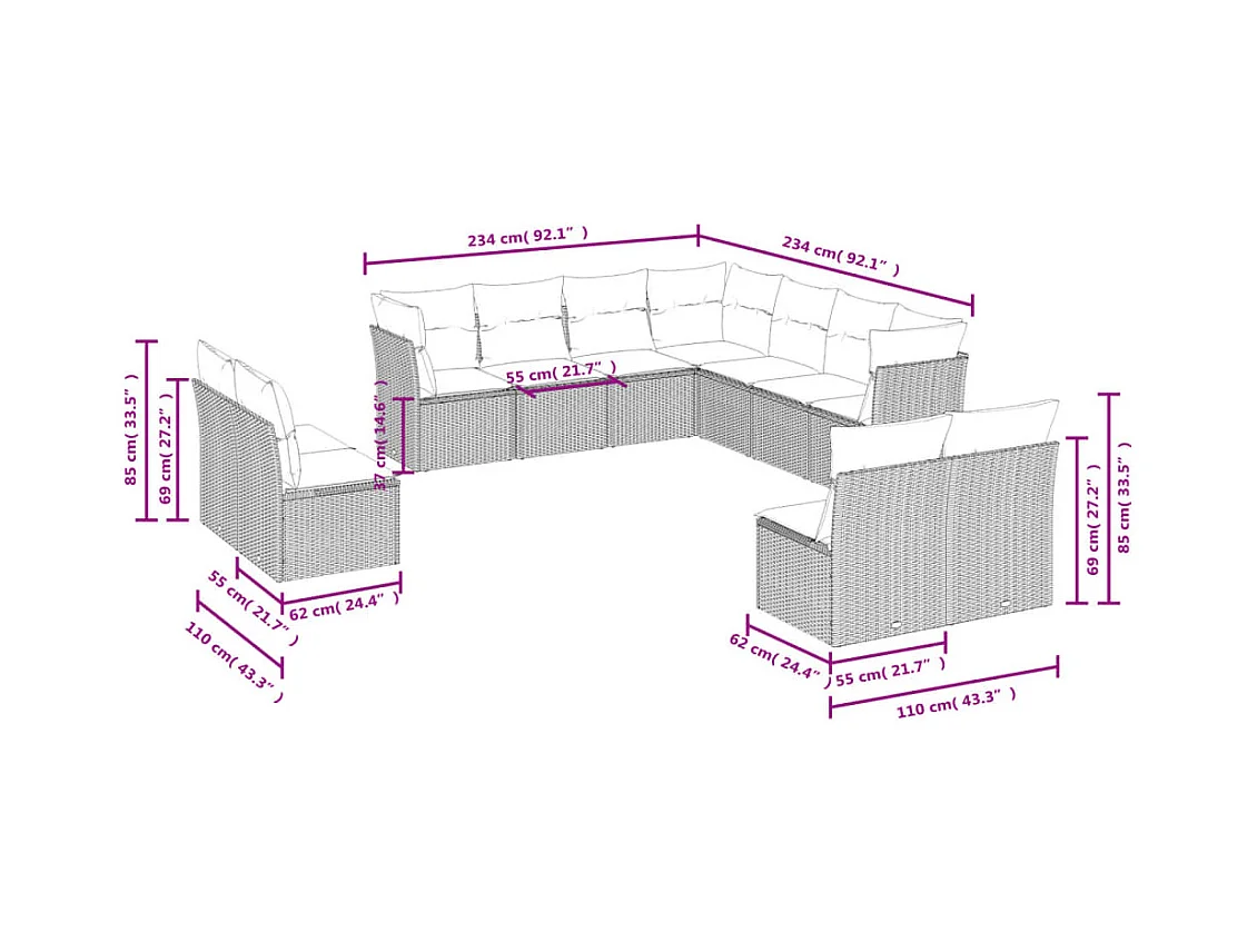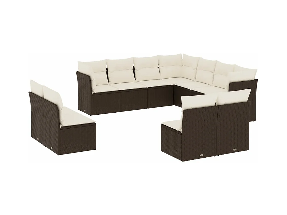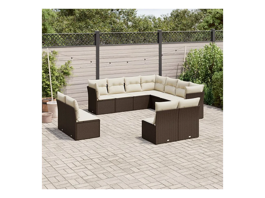 Salon de jardin et coussins 11 pcs marron résine tressée