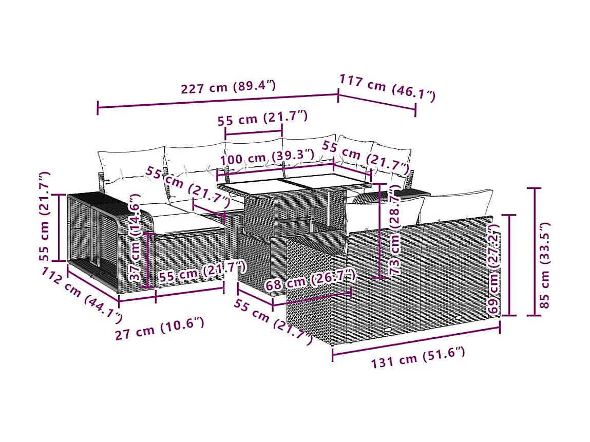 Salon complet de jardin Canapé 2 places et 2 fauteuils