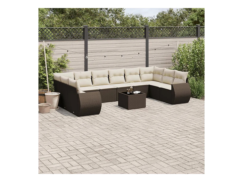 Salon de jardin 10 pièces avec coussins marron résine tressée