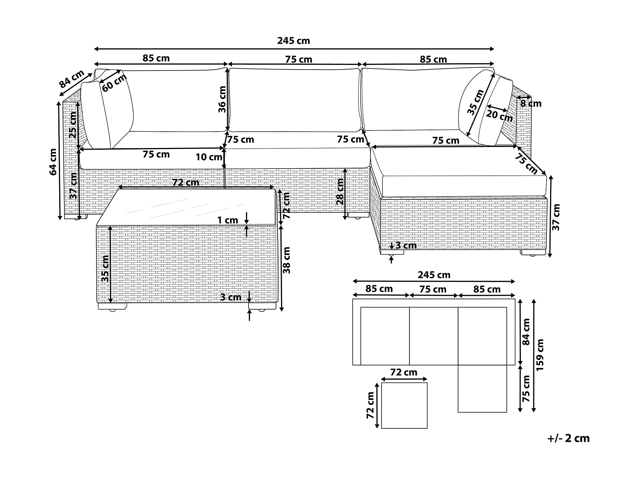 Ensemble de canapés d'angle de jardin 4 places SANO II Côté gauche Polyrotin Gris clair