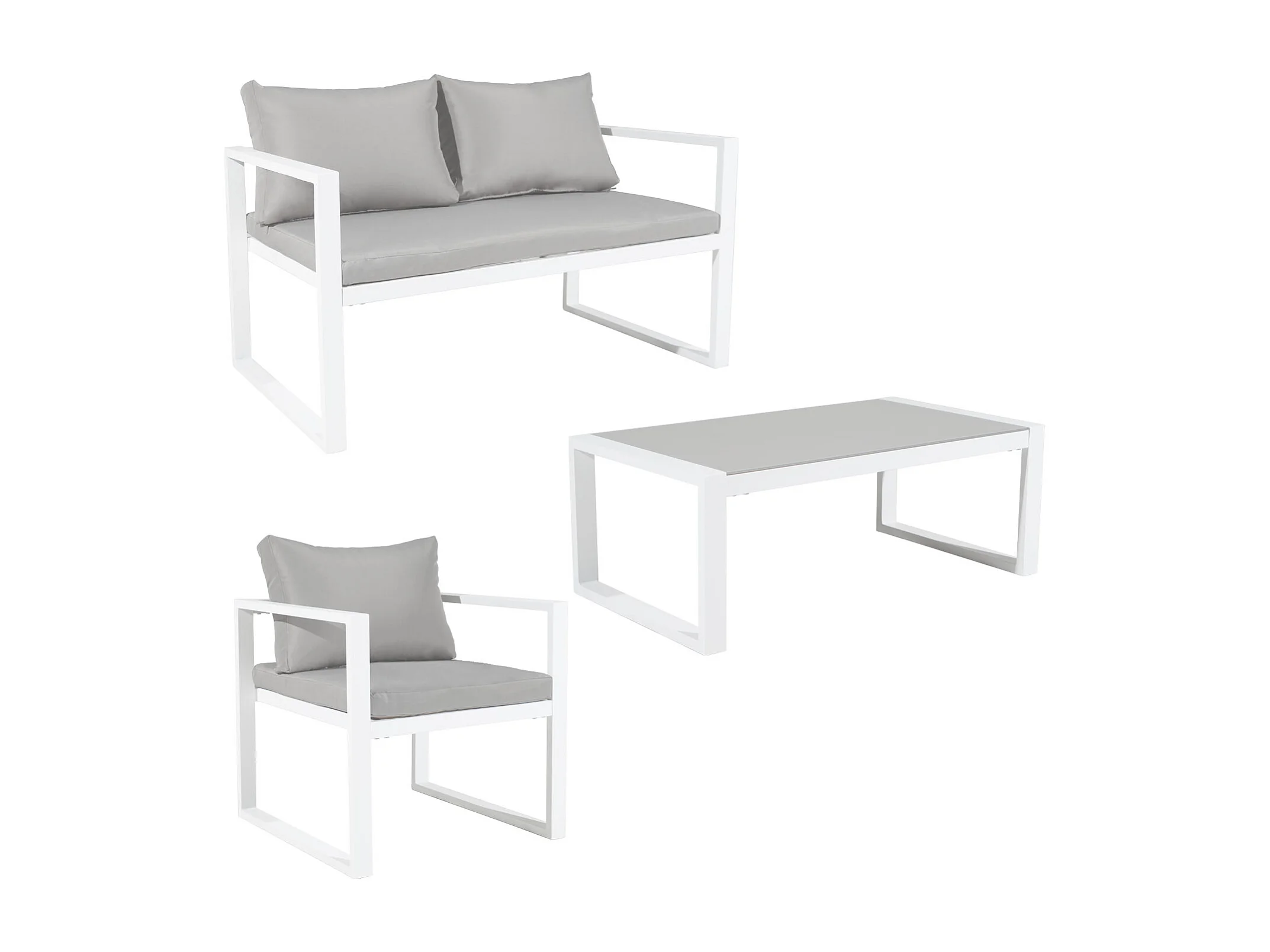 Salon de jardin IBIZA en tissu gris 4 places - aluminium blanc