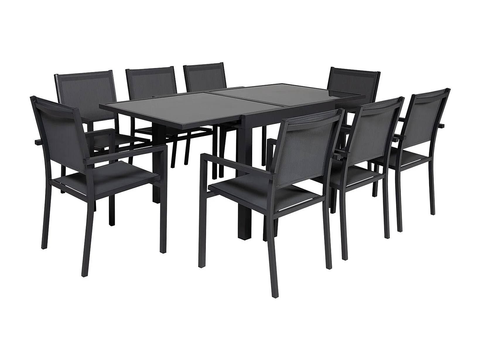 Salon de jardin LAMPEDUSA extensible en textilène gris 8 places - aluminium anthracite