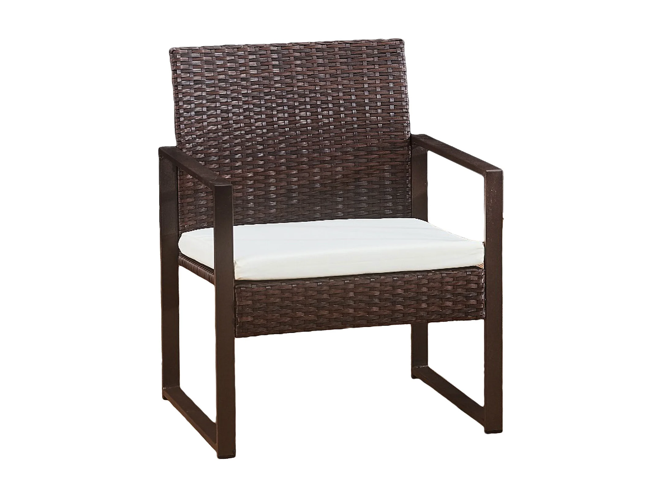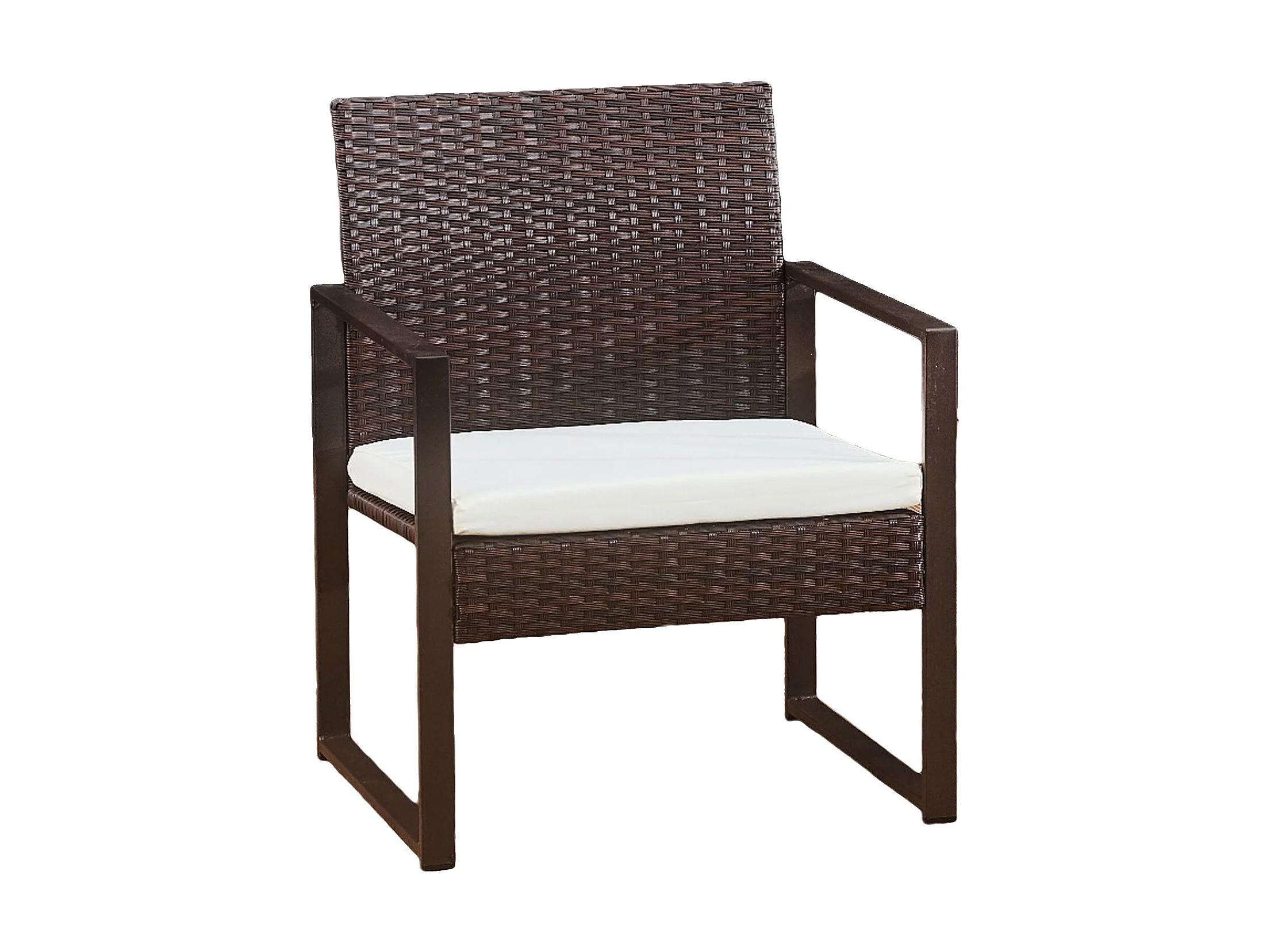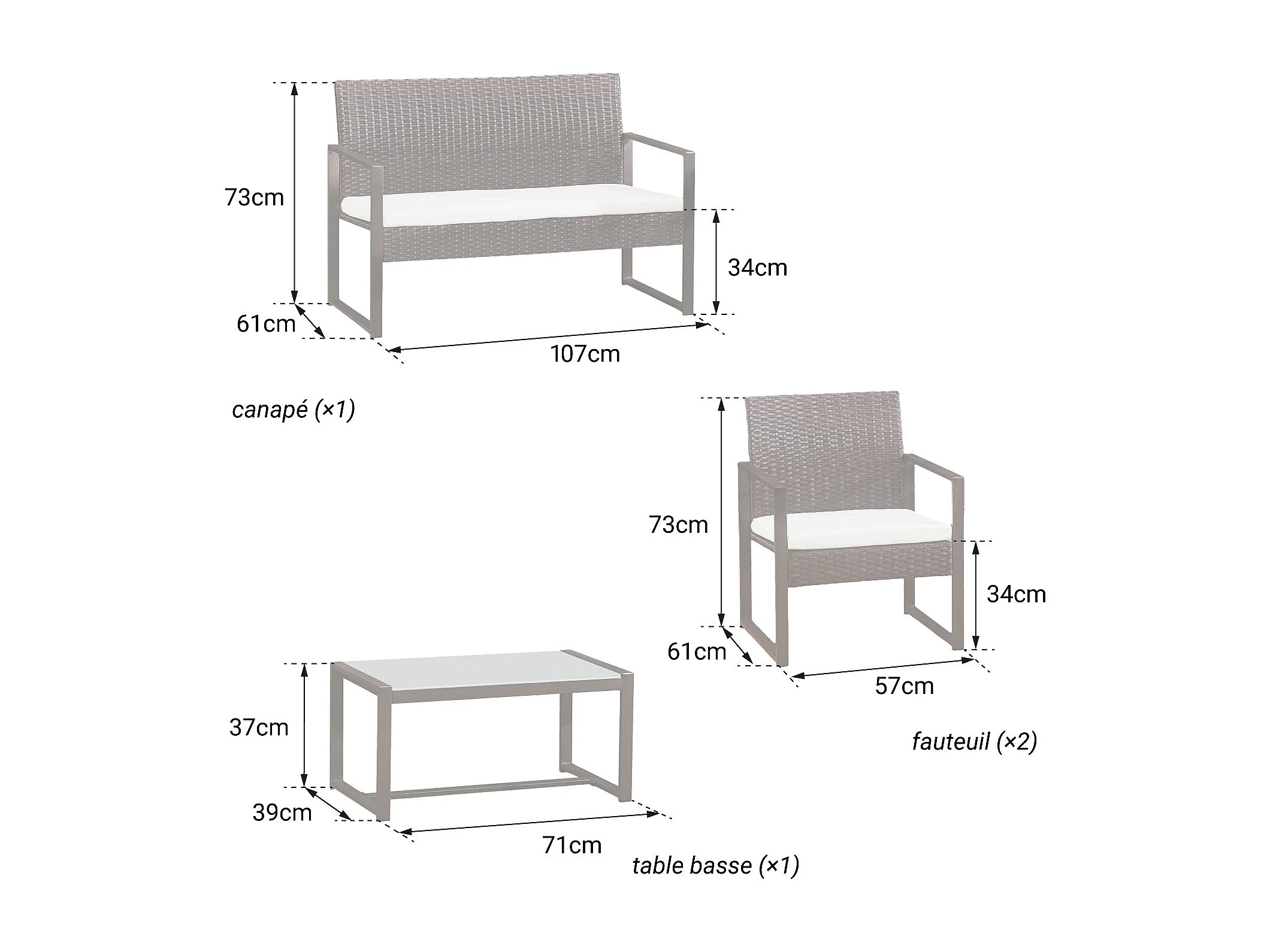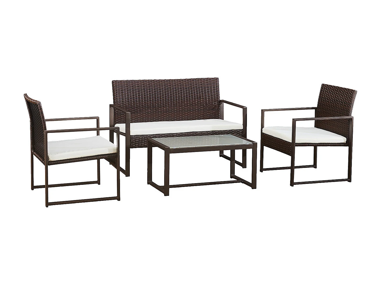Salon de jardin MAJORQUE en résine tressée marron 4 places - coussins ivoire - HAPPY GARDEN