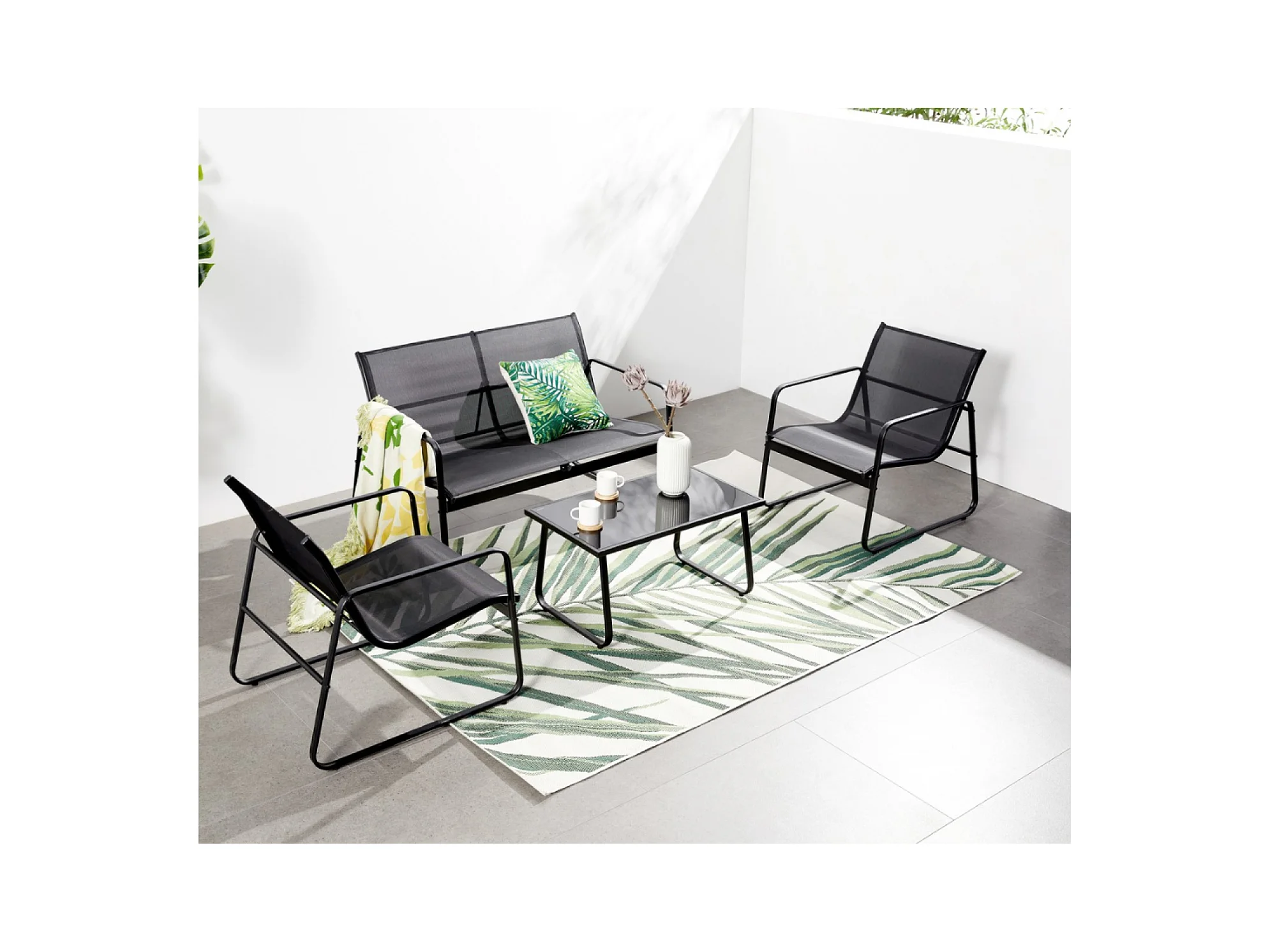 Salon de jardin 4 places en toile de polyester noir AURORA