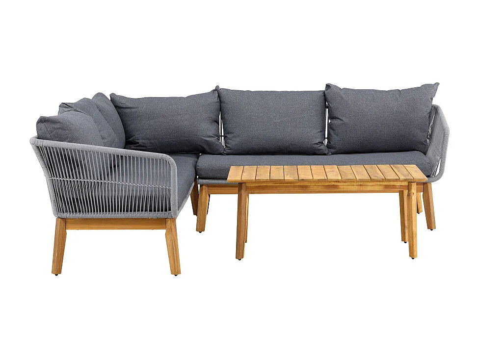Salon d'Angle de Jardin en Bois "Chania" 210cm Gris