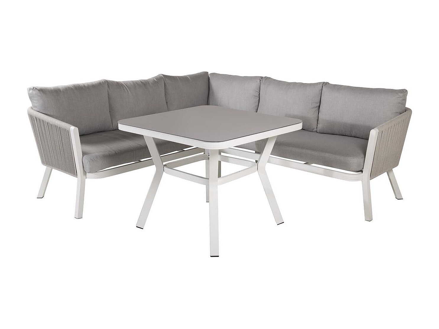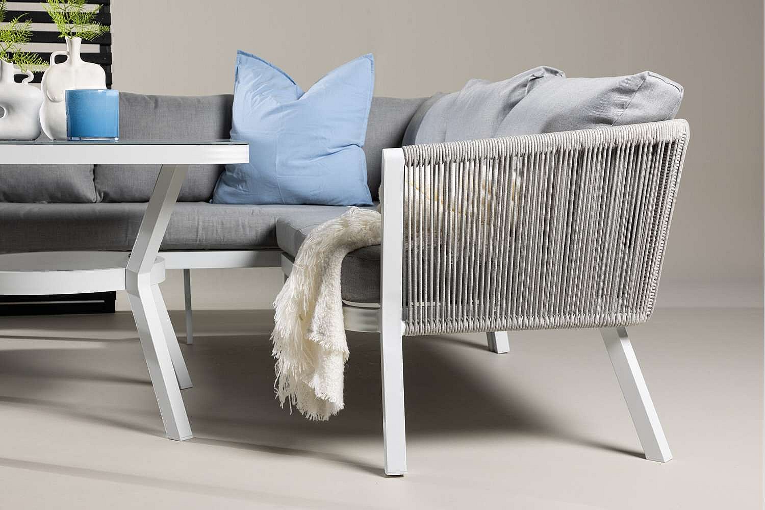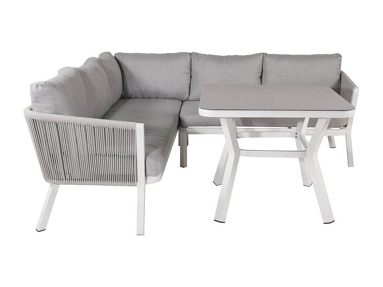 Salon d'Angle de Jardin "Virya" 206cm Blanc & Gris