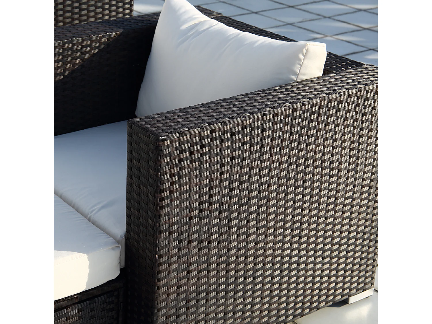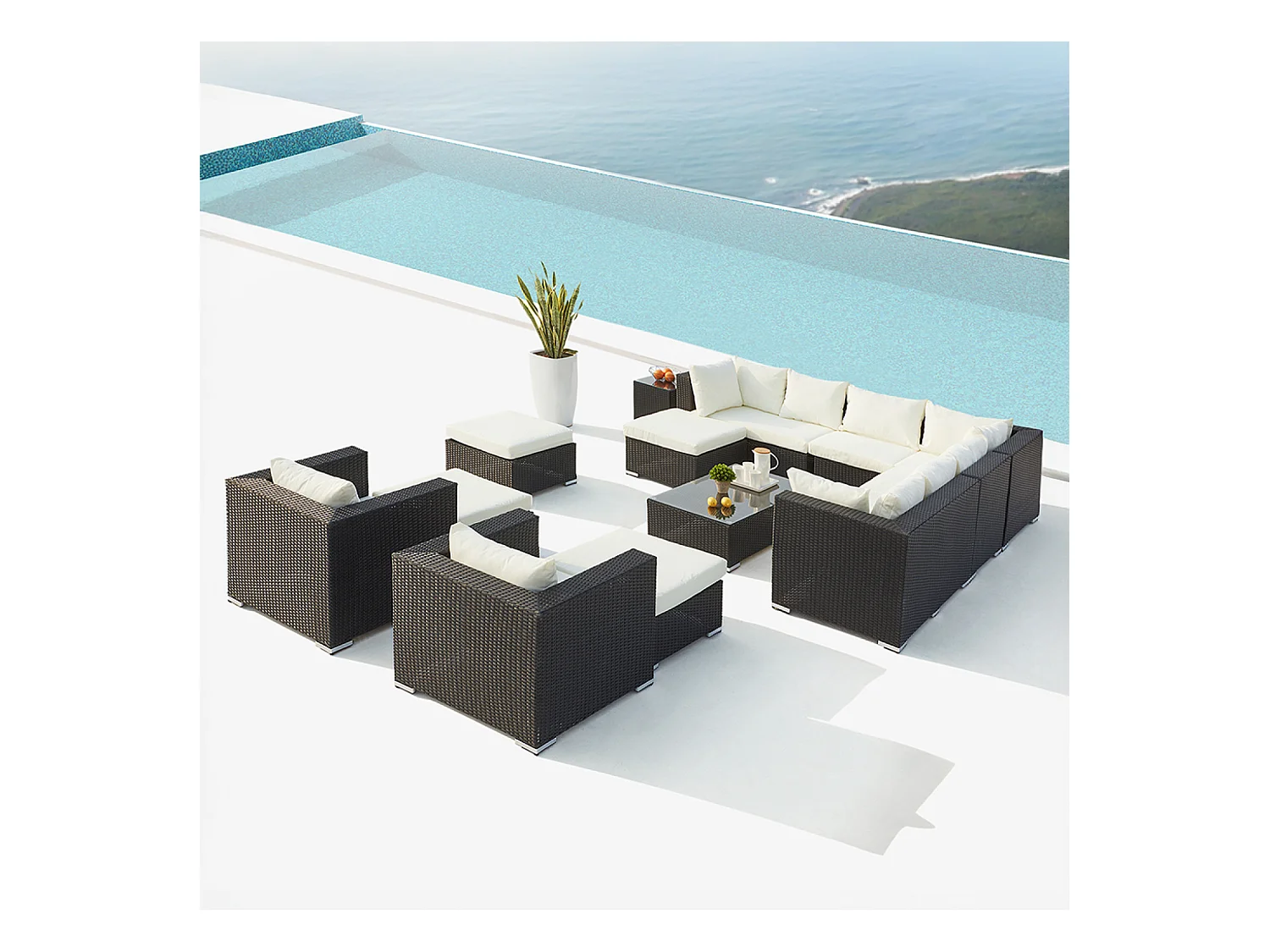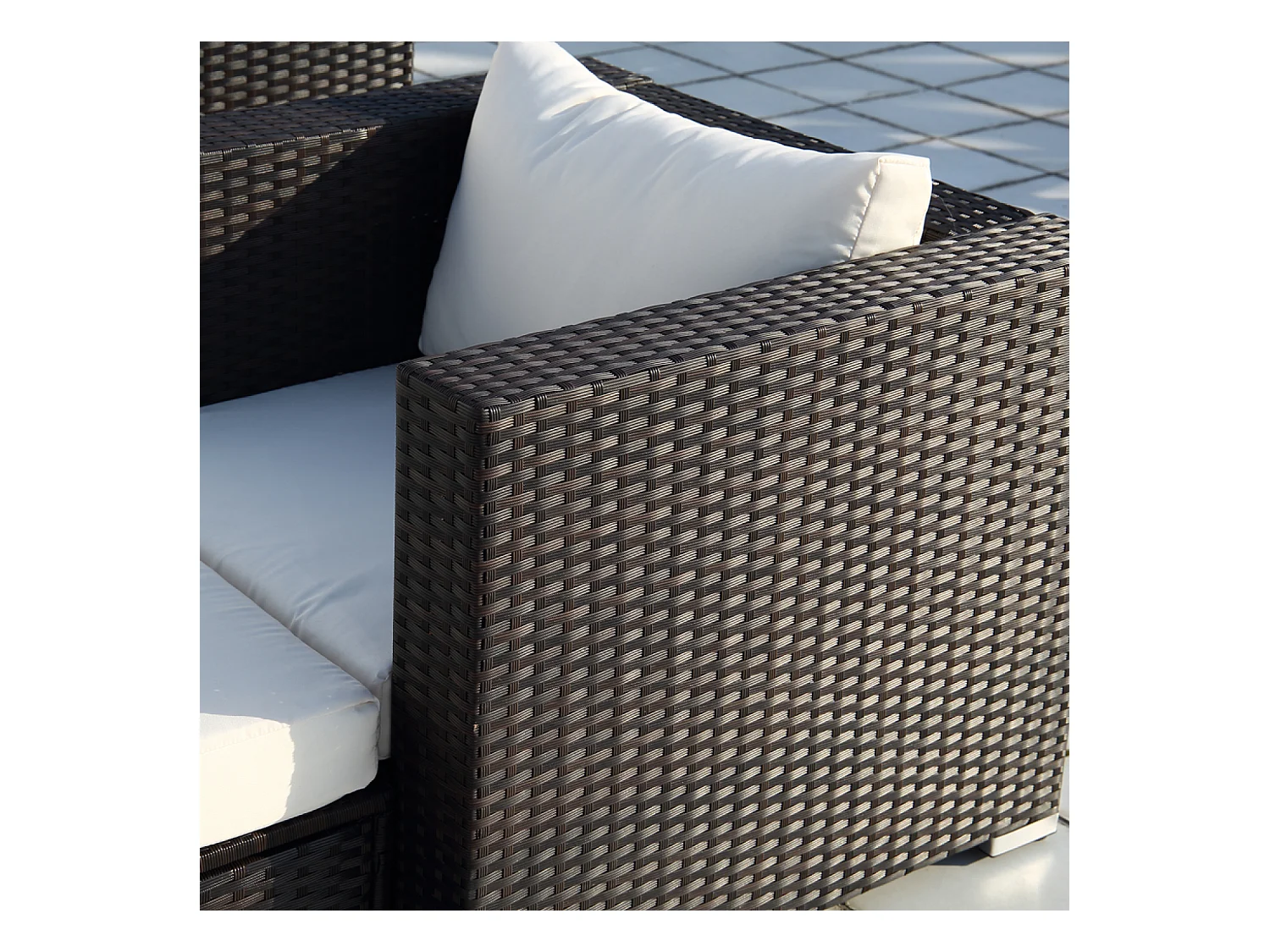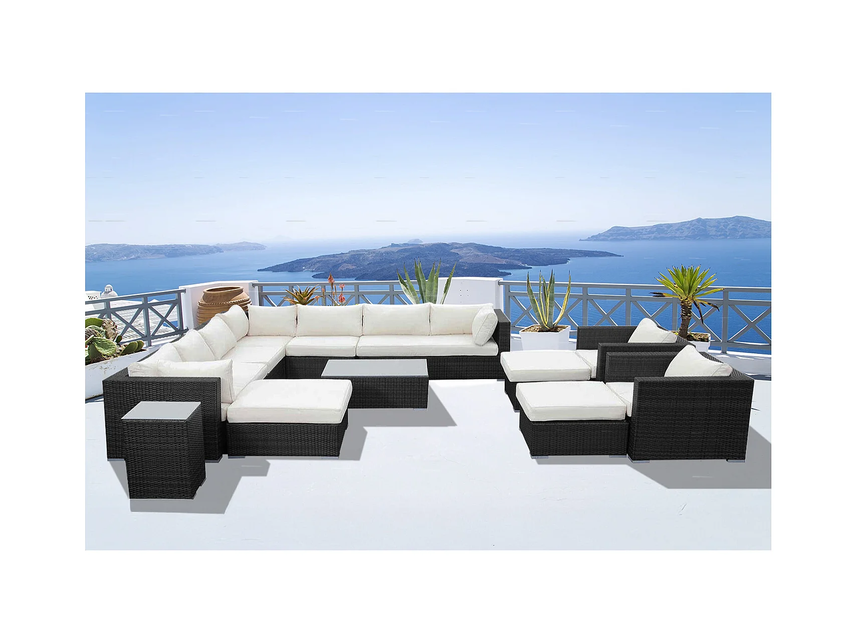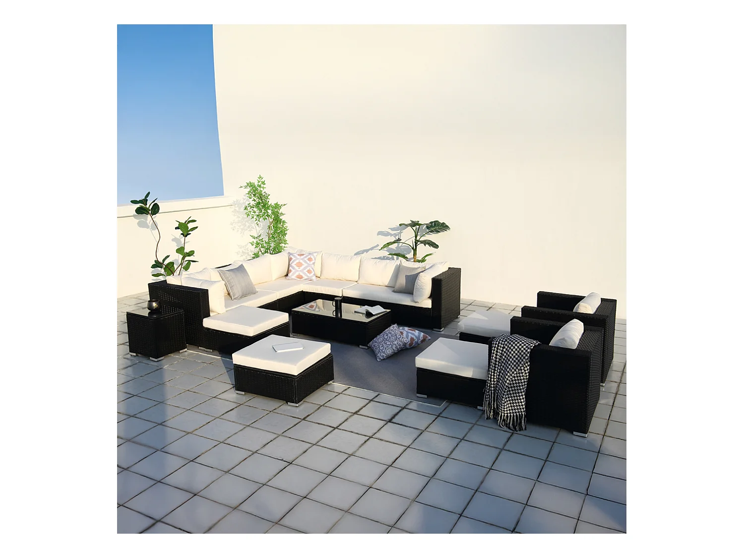 Salon de jardin modulable 13-14 places en résine tressée noir et blanc STALLA