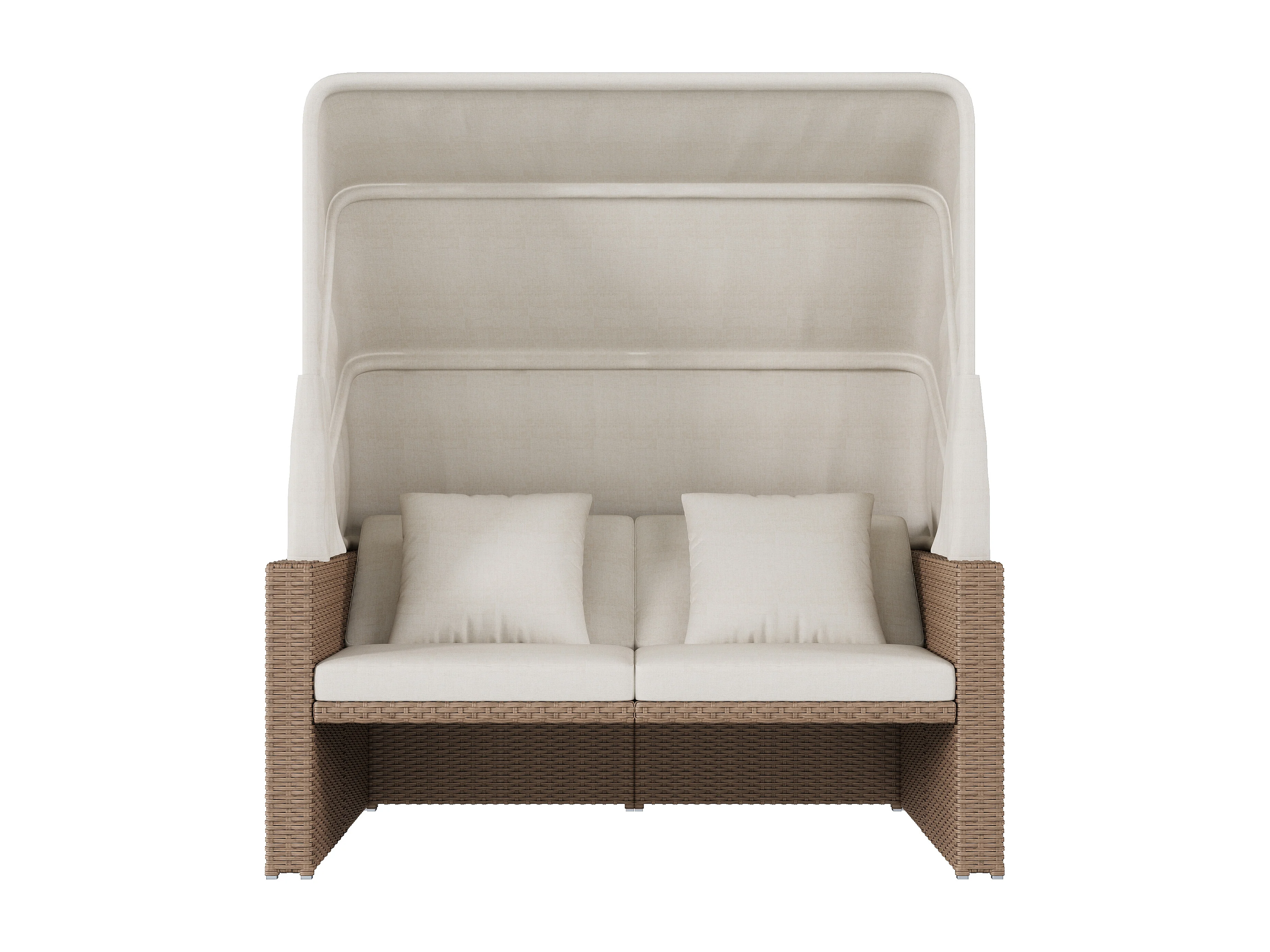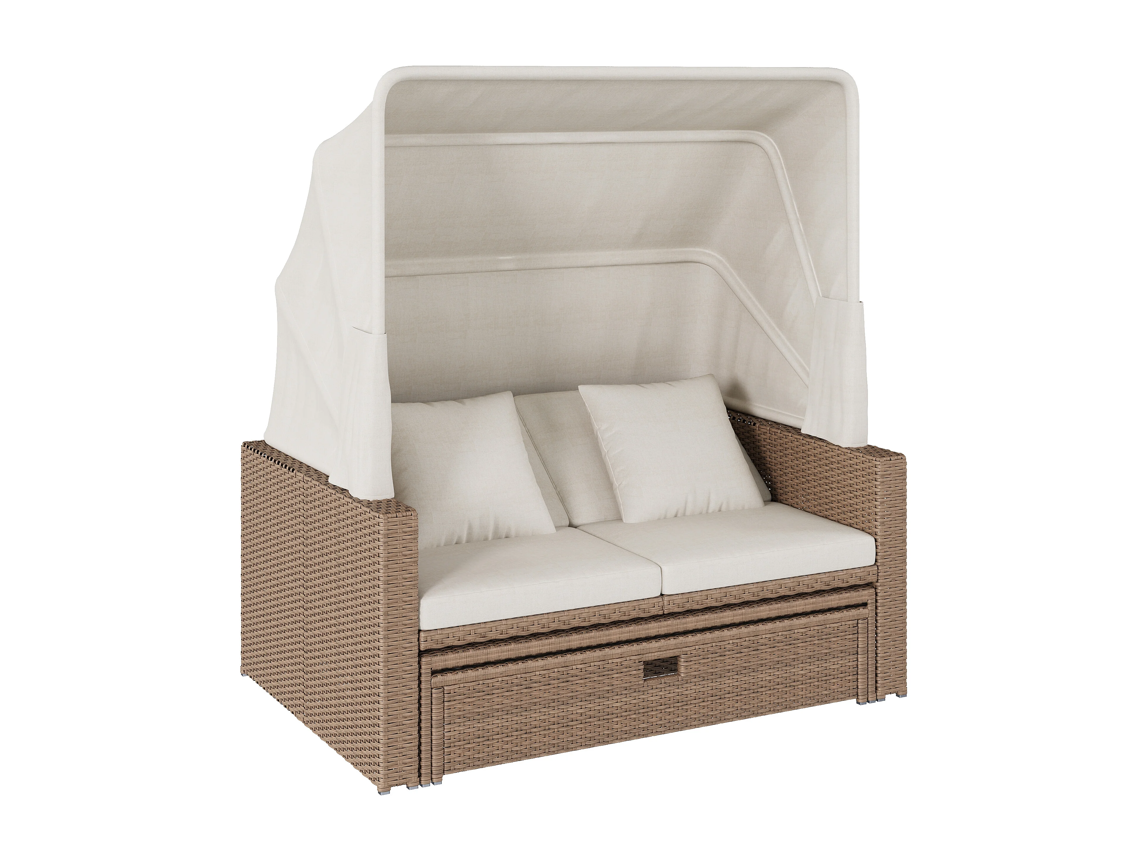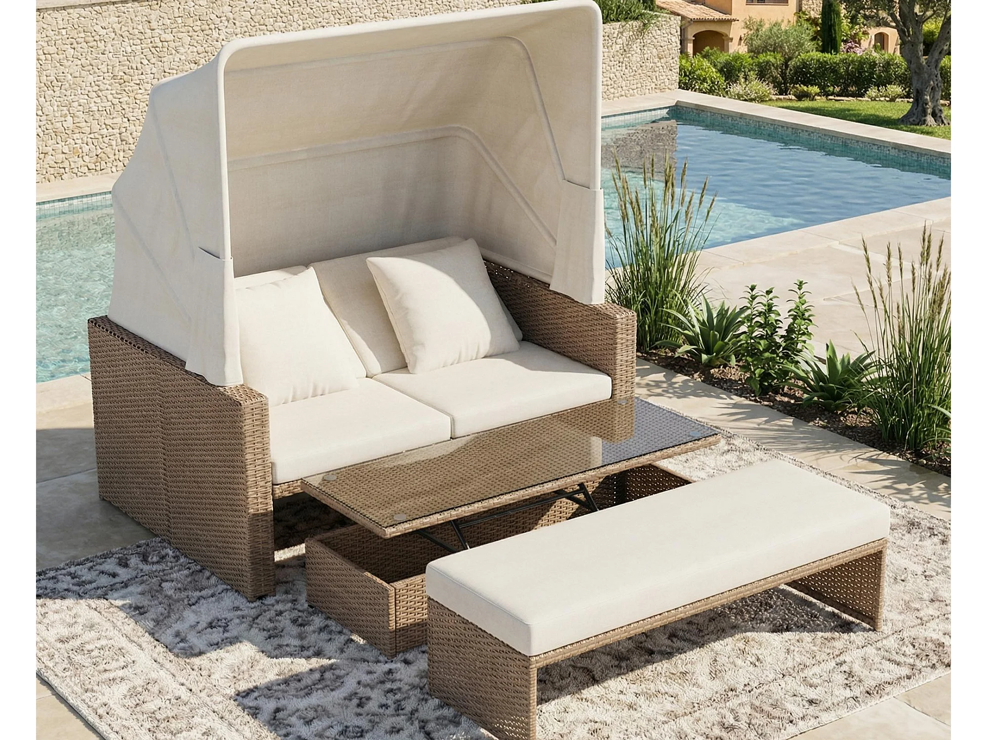Salon de Jardin Modulable 2-4 Places avec Auvent Escamotable - Canapé convertible en Lit de Repos - Table Basse Réglable - Résine Tressée - Khak