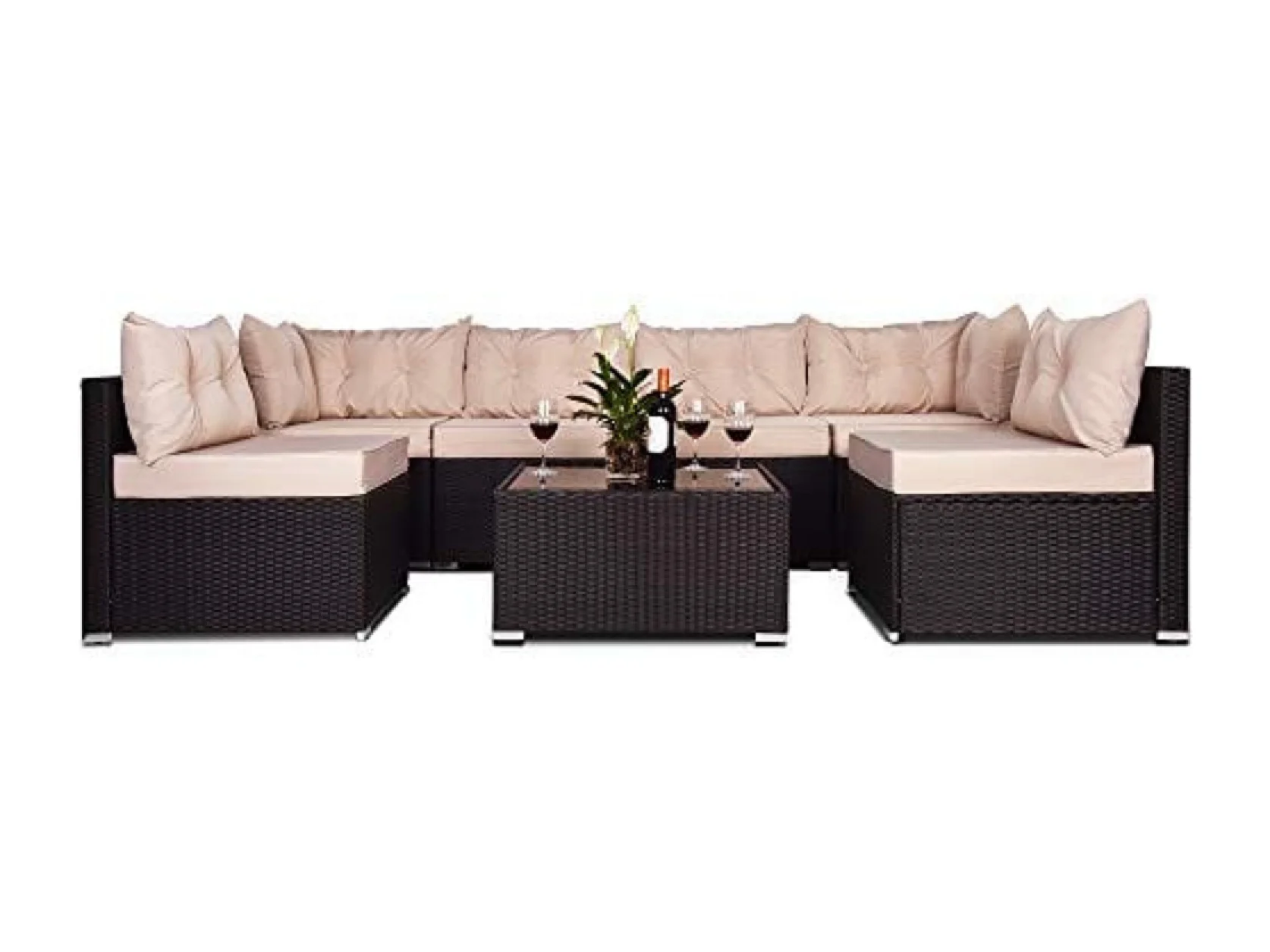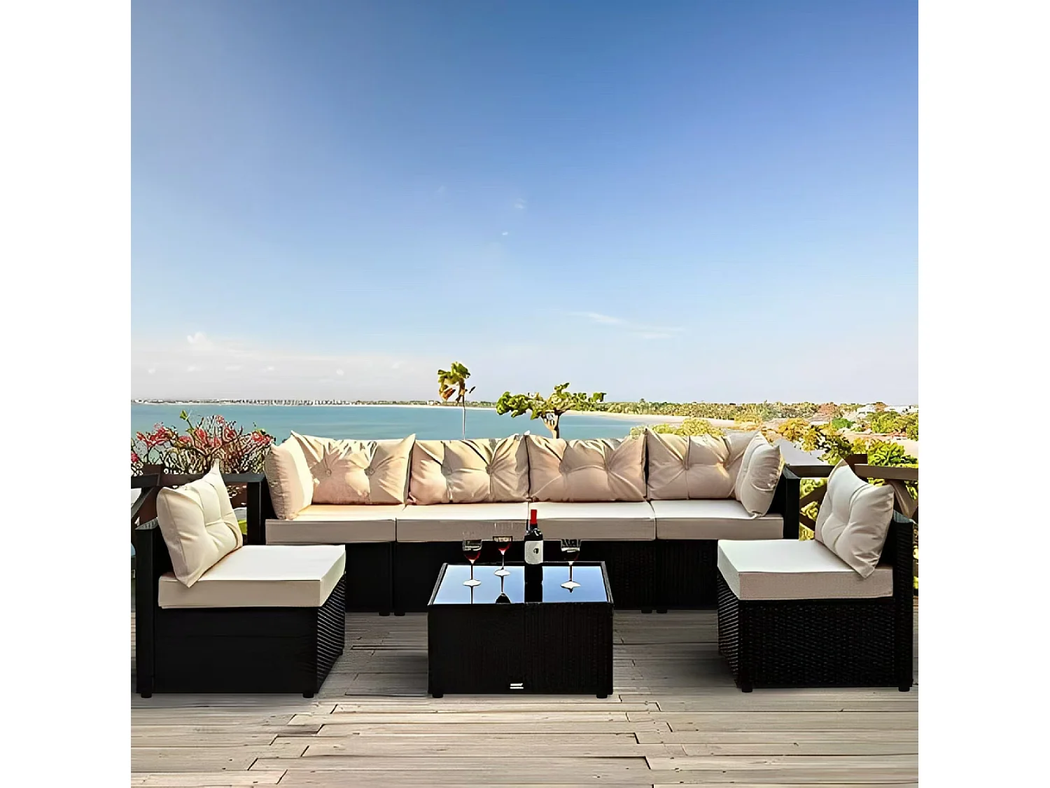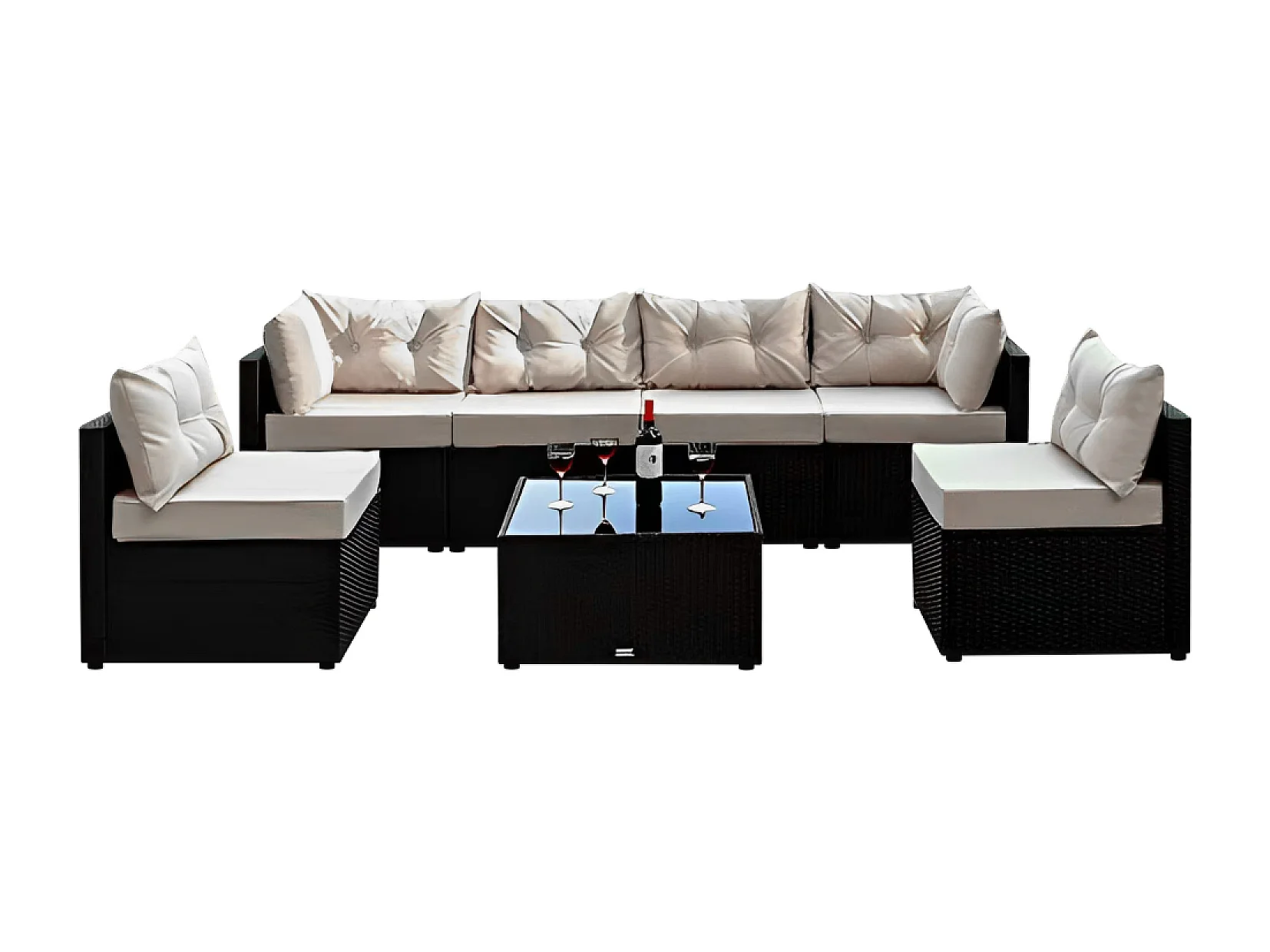 Salon de jardin modulable 6 places en résine tressée - noir NACULA