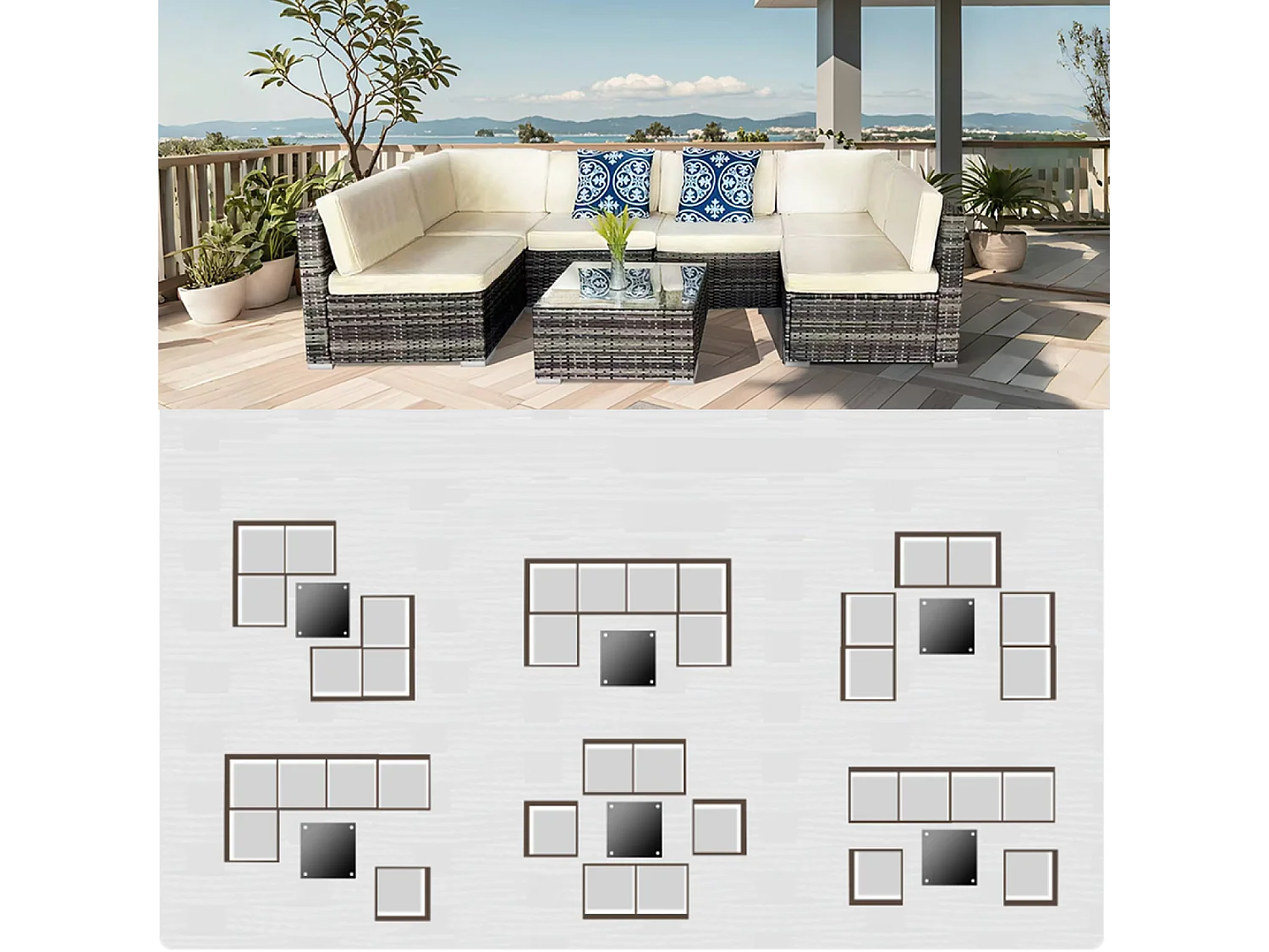Salon de jardin modulable 6 places en résine tressée - marron et beige ALDABRA
