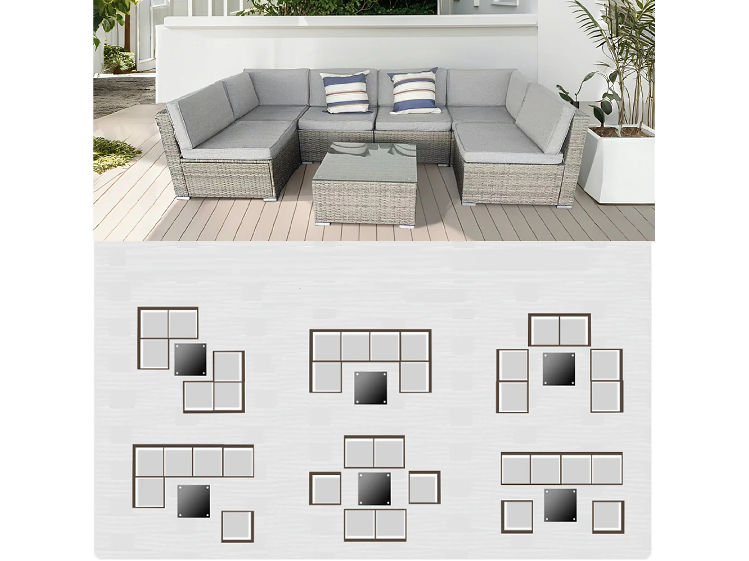 Salon de jardin modulable 6 places en résine tressée - gris et gris ALDABRA