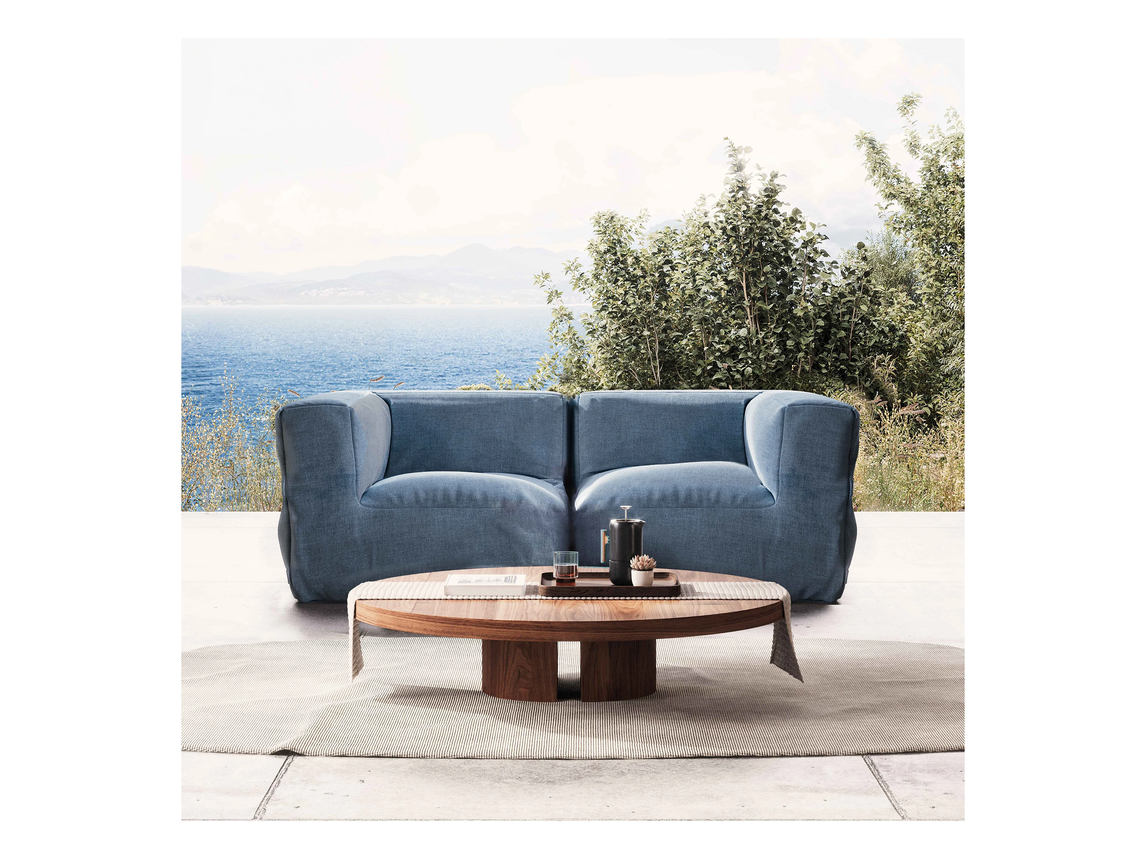 Salon de jardin canapé deux places SONNE, tissu ARTICLE, bleu marine