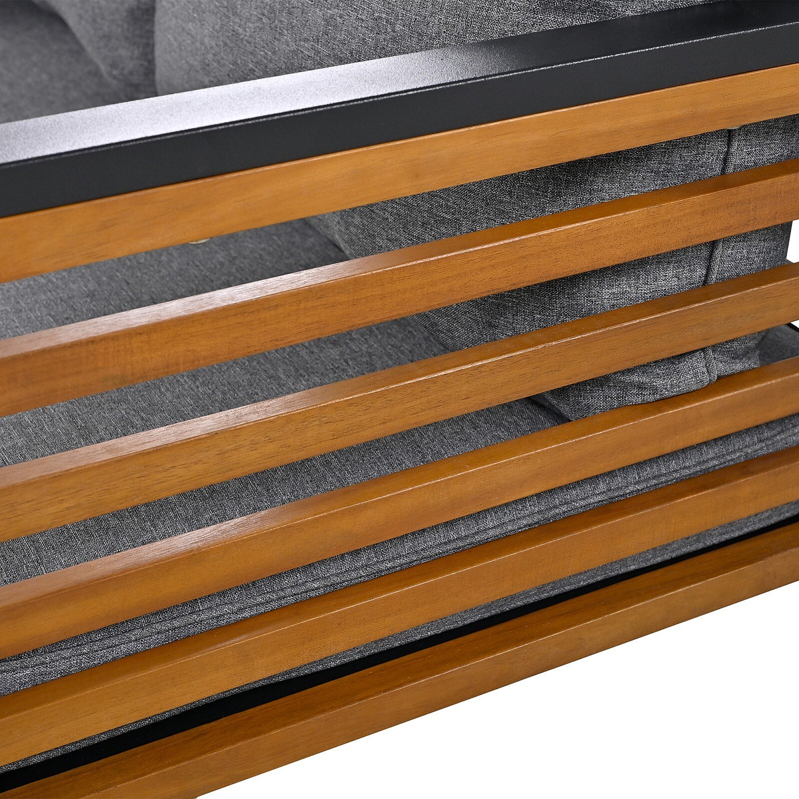 Salon de jardin modulable - avec cadres en fer galvanisé et accoudoirs en bois - Table basse et canapé modulable 6 places