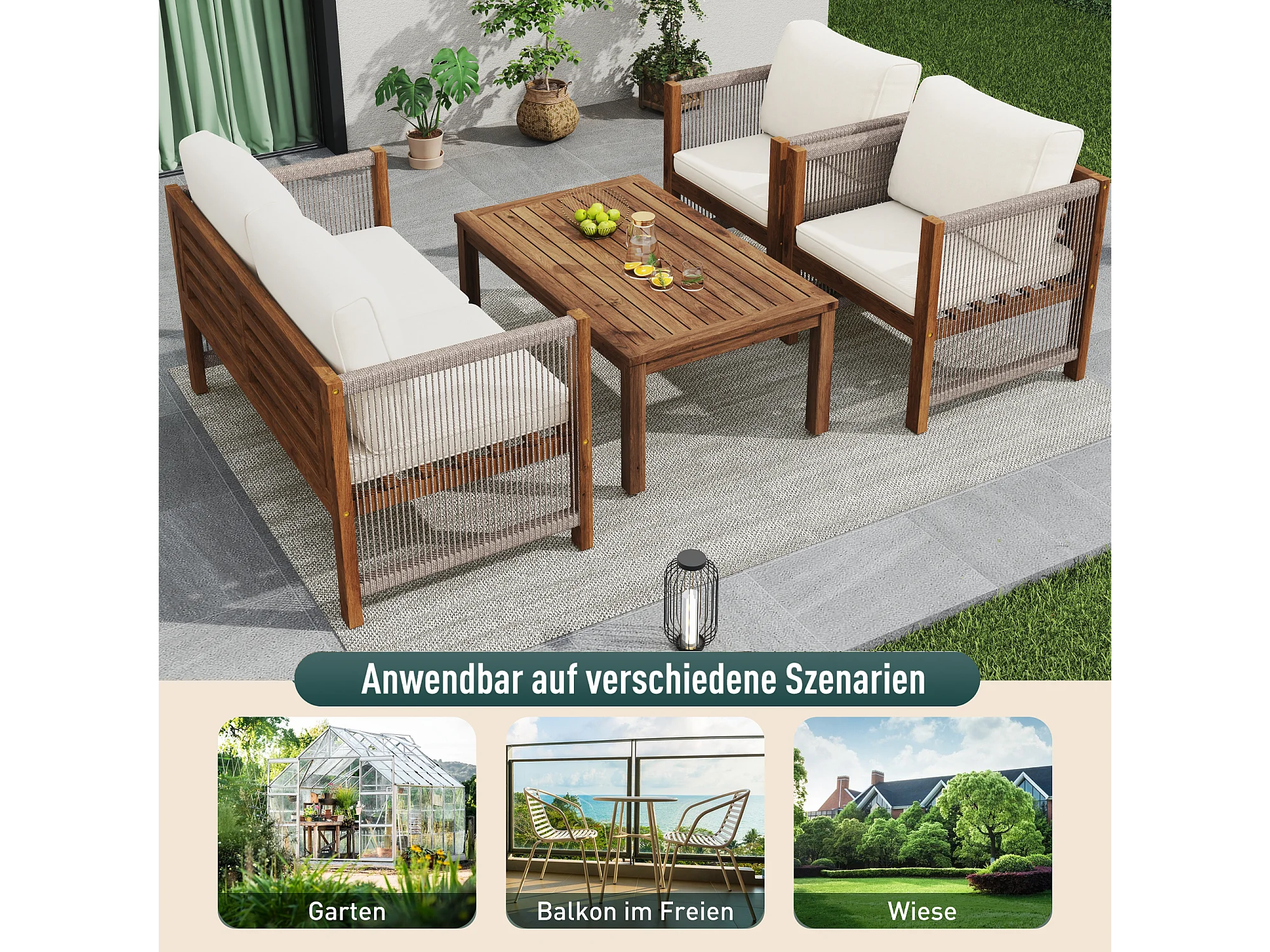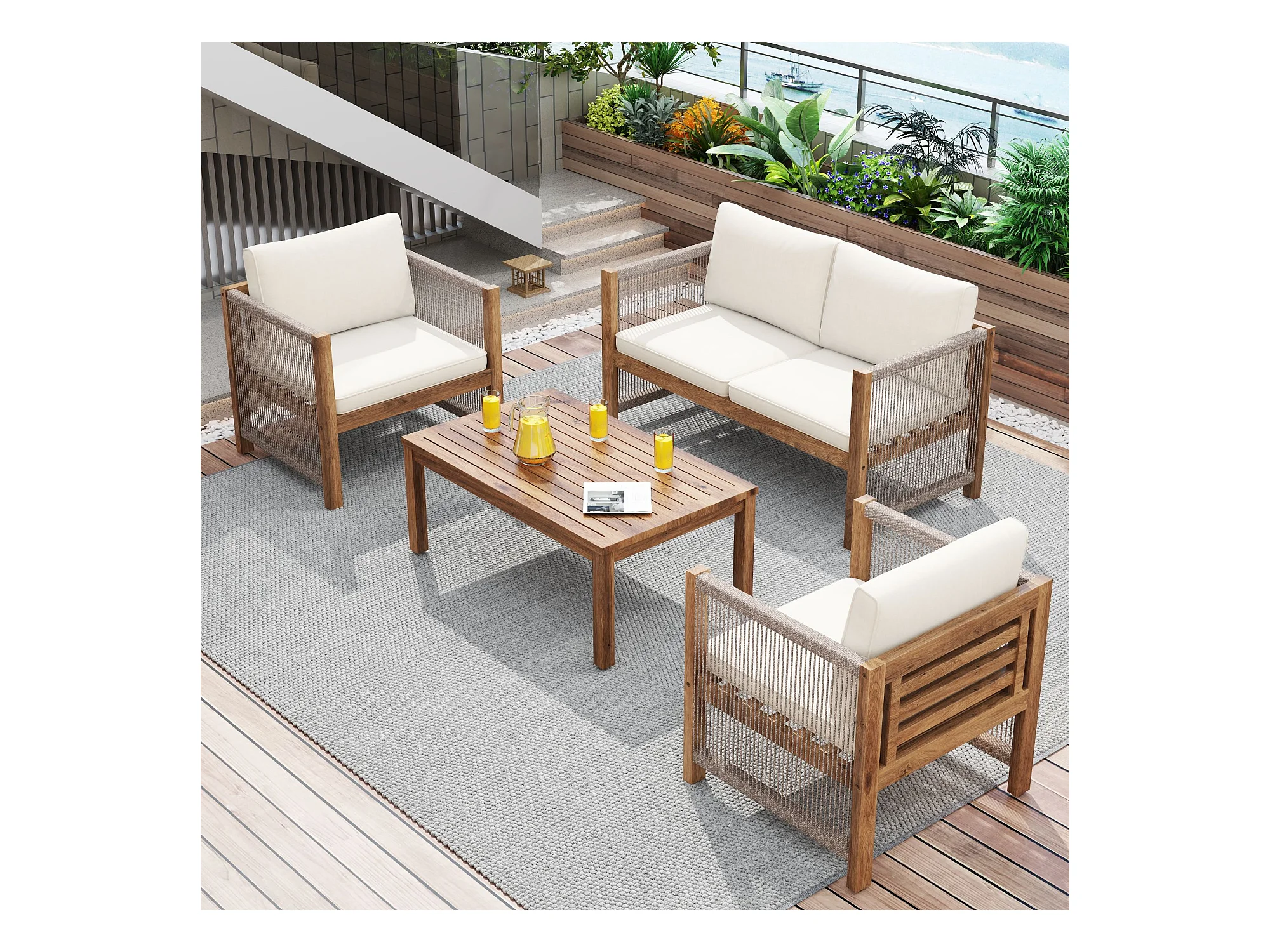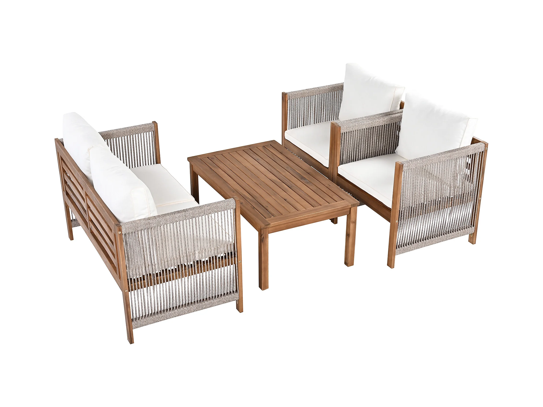 Salon de jardin modulable en bois d'acacia : 1 canapé 2 places + 2 fauteuils + 1 table basse - Beige