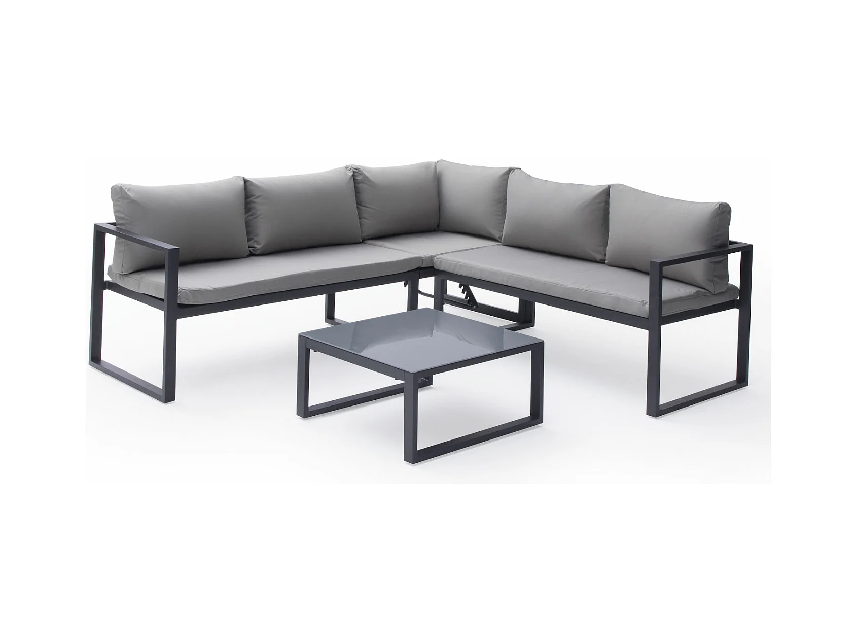 Salon de jardin modulable IBIZA en tissu gris 4 places - aluminium anthracite - HAPPY GARDEN