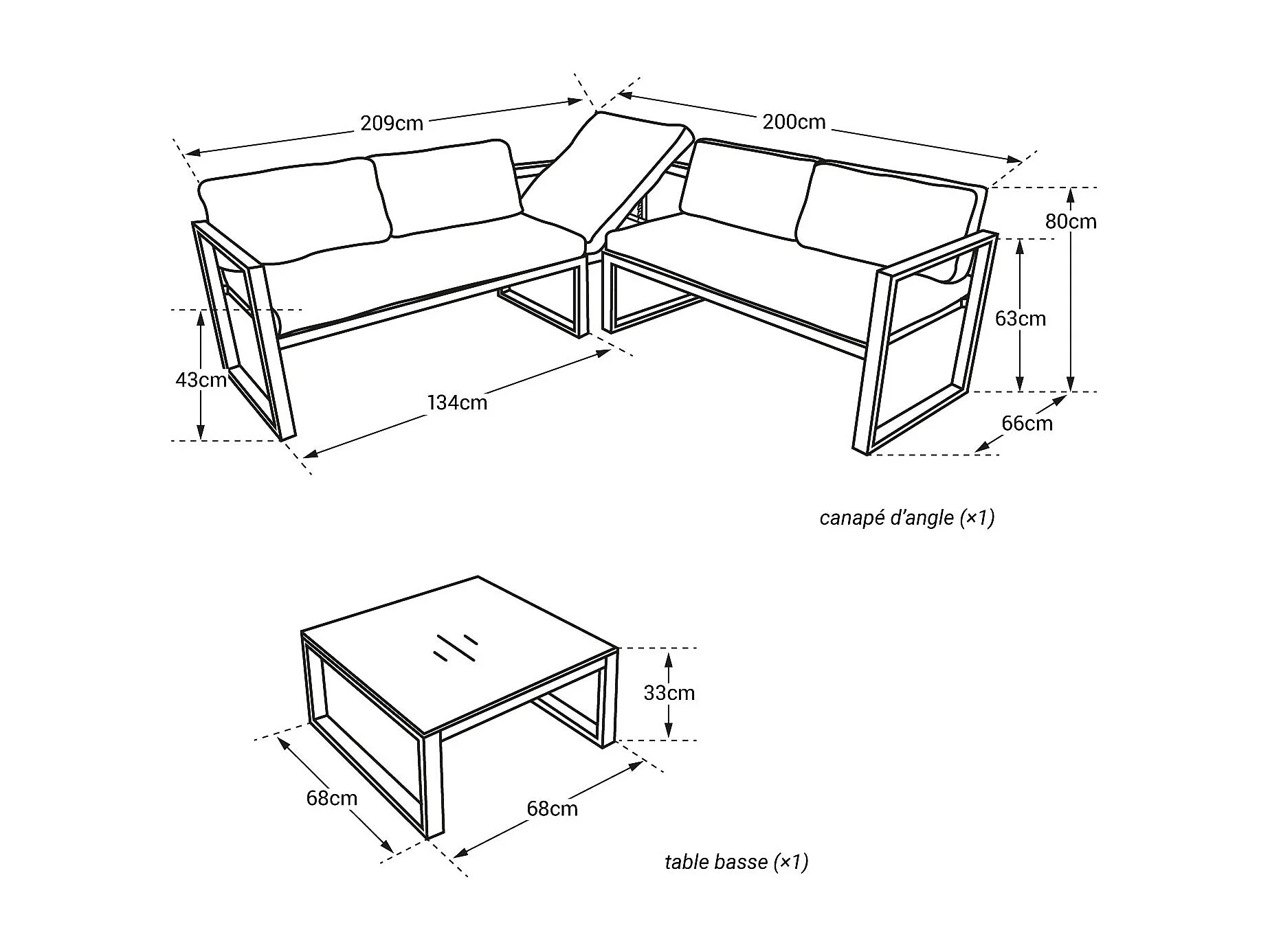 Salon de jardin modulable IBIZA en tissu gris 4 places - aluminium blanc - HAPPY GARDEN