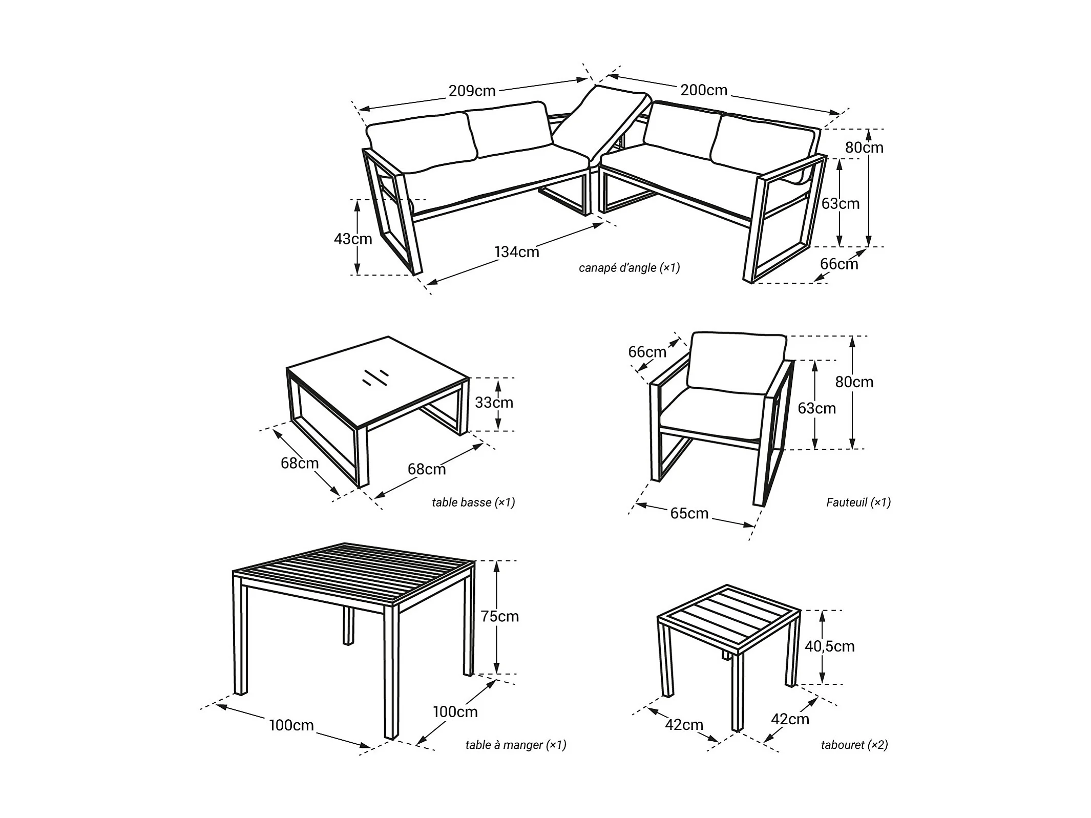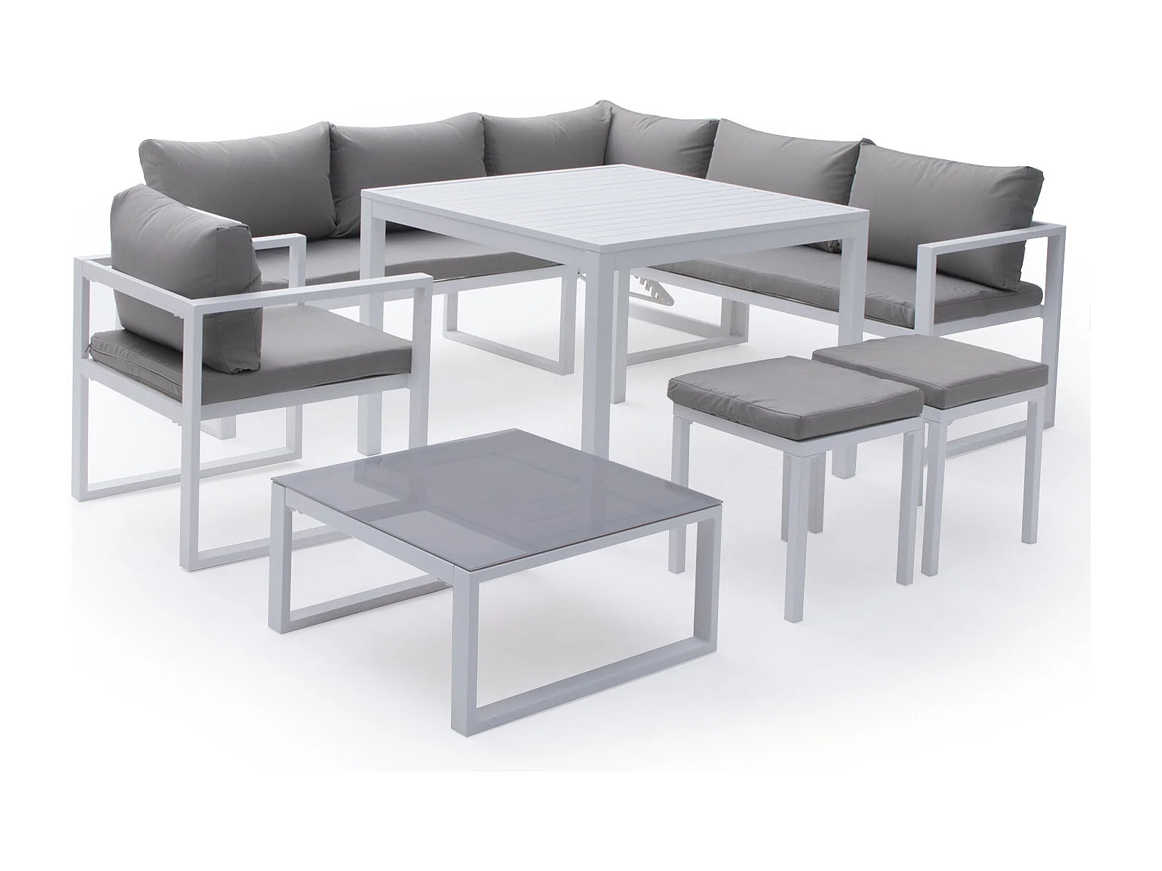 Salon de jardin modulable IBIZA en tissu gris 7 places - aluminium blanc - HAPPY GARDEN