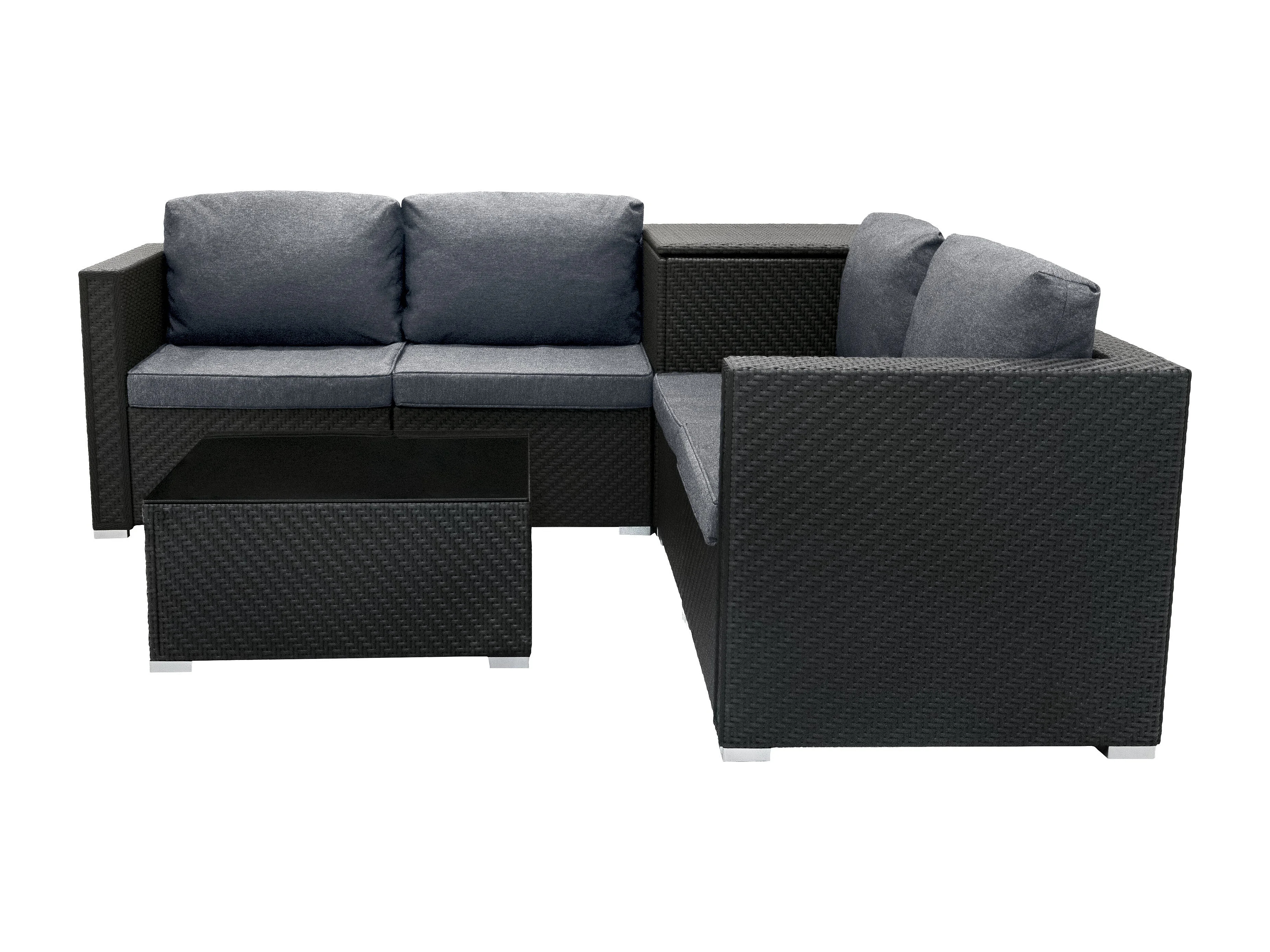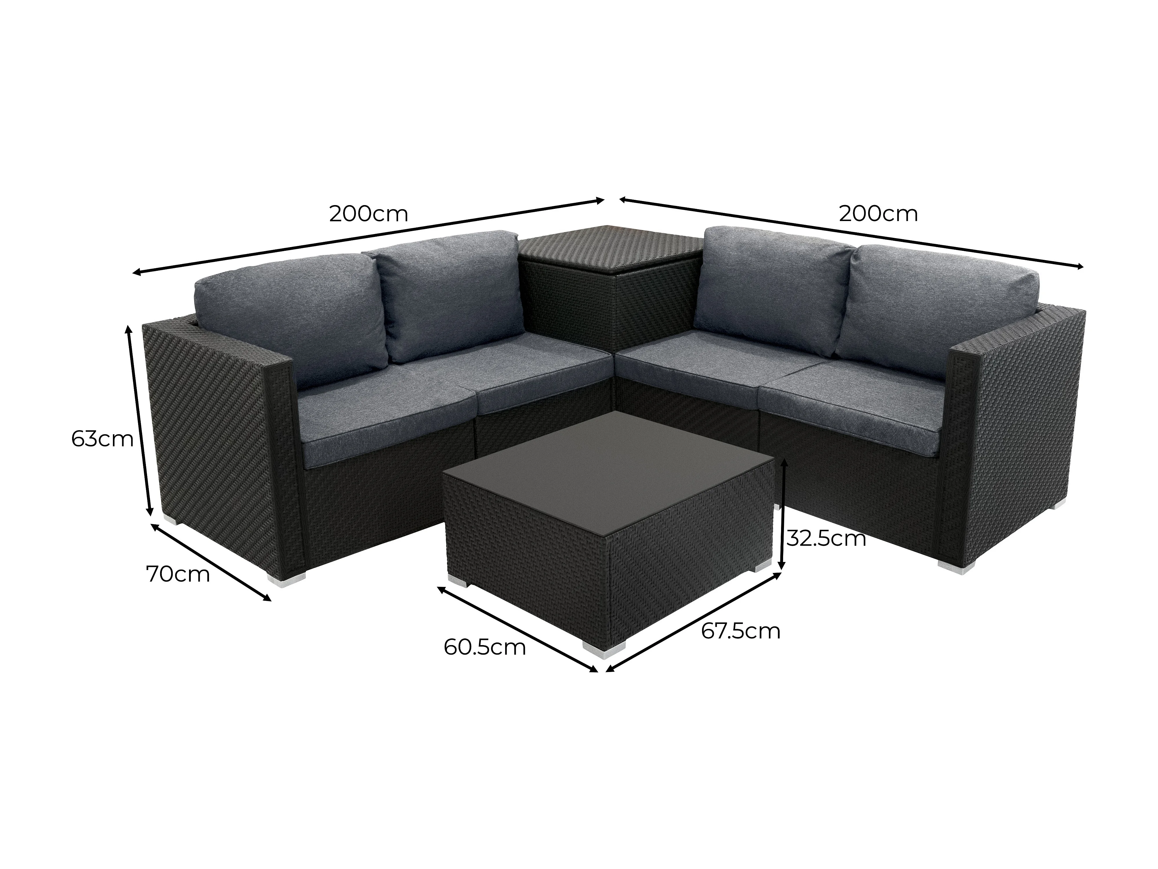 Salon de Jardin Modulaire en Rotin Noir 6 Pièces Canapé & 2 Coffres de Rangement