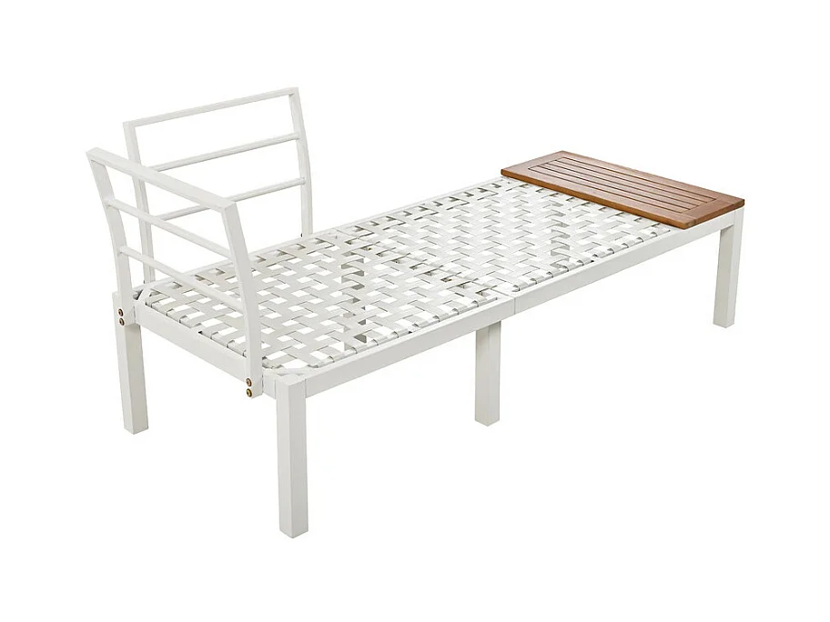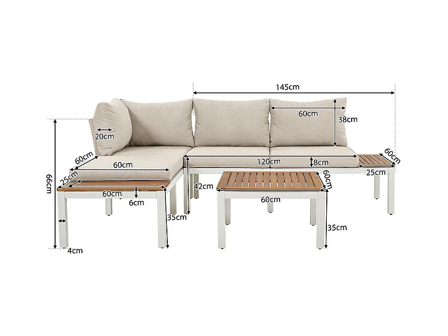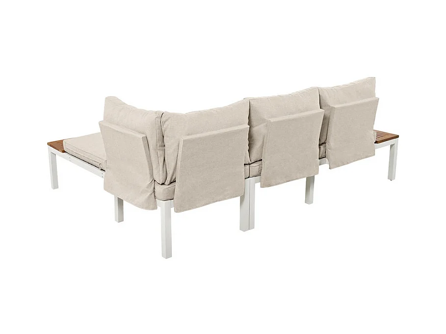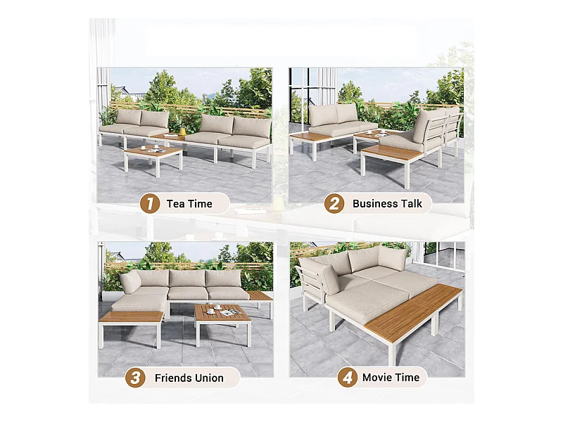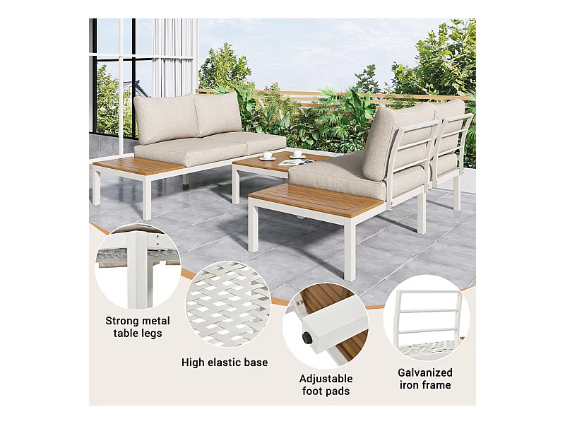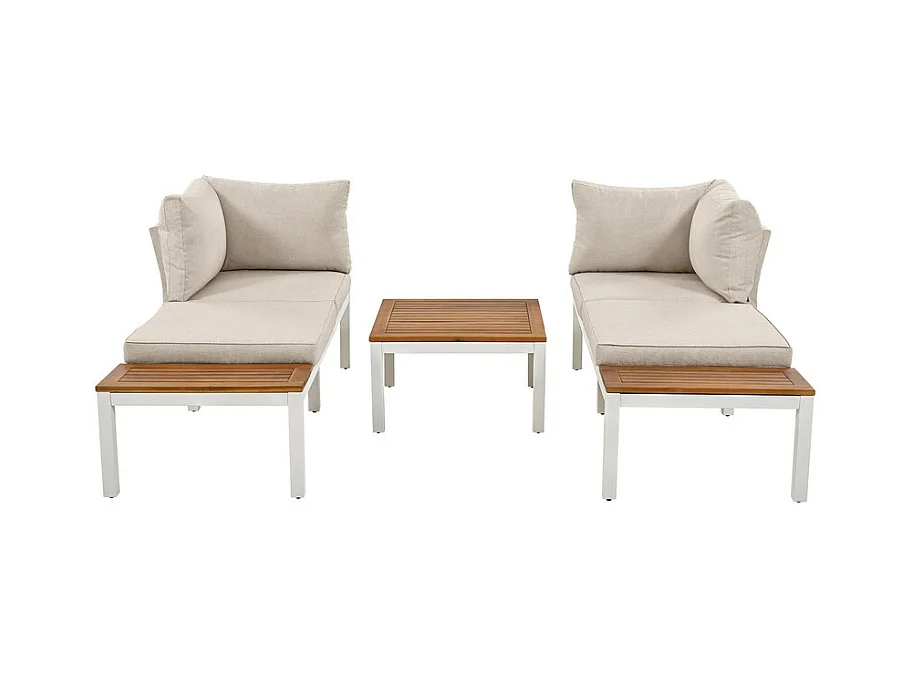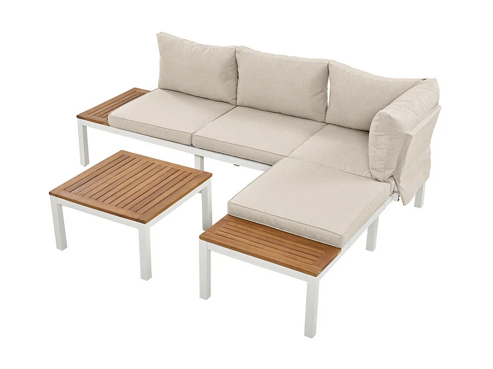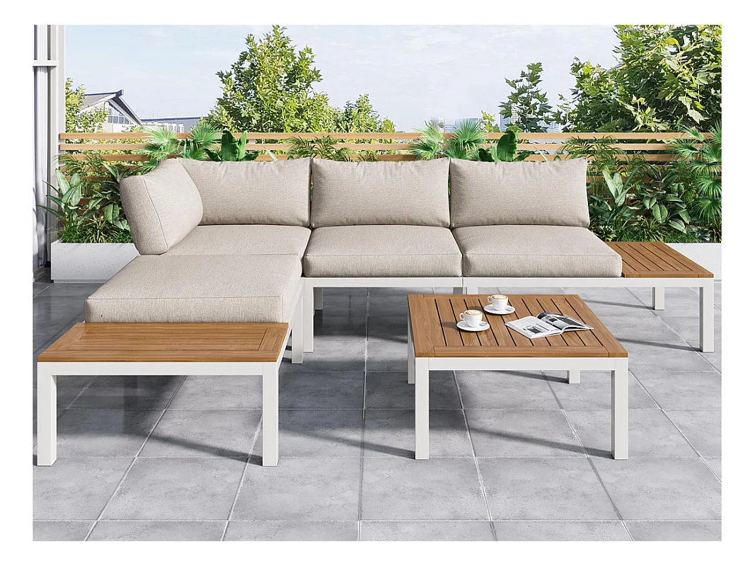 Salon de jardin multifonctionnel en Acier galvanisé et décoré de Bois d'Acacia - 4 places - canapé d'angle et 1 table basse - Beige
