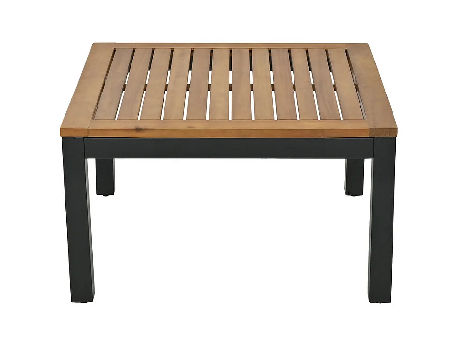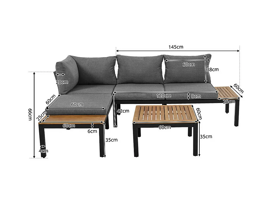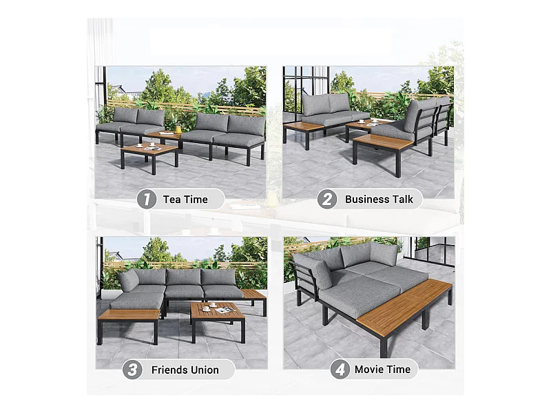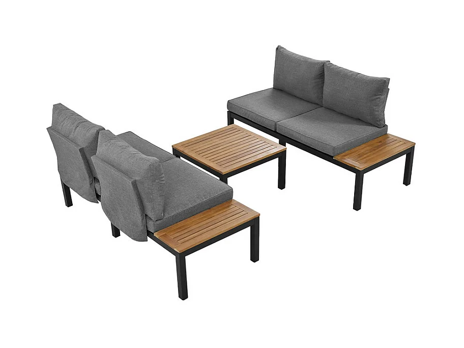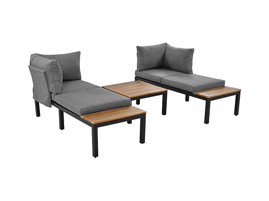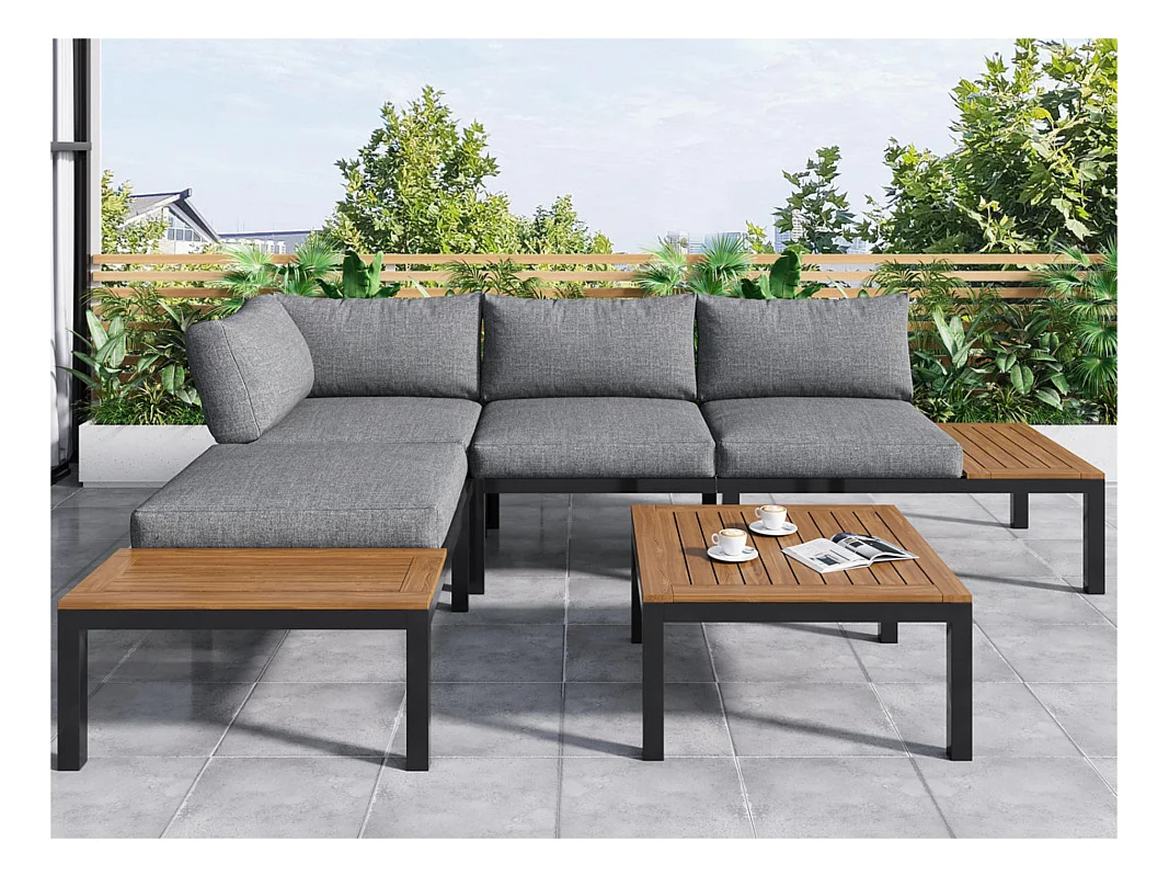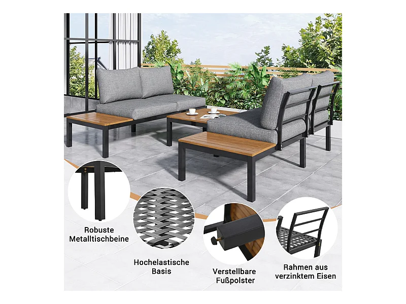 Salon de jardin multifonctionnel en Acier galvanisé et décoré de Bois d'Acacia - 4 places - canapé d'angle et 1 table basse - Gris