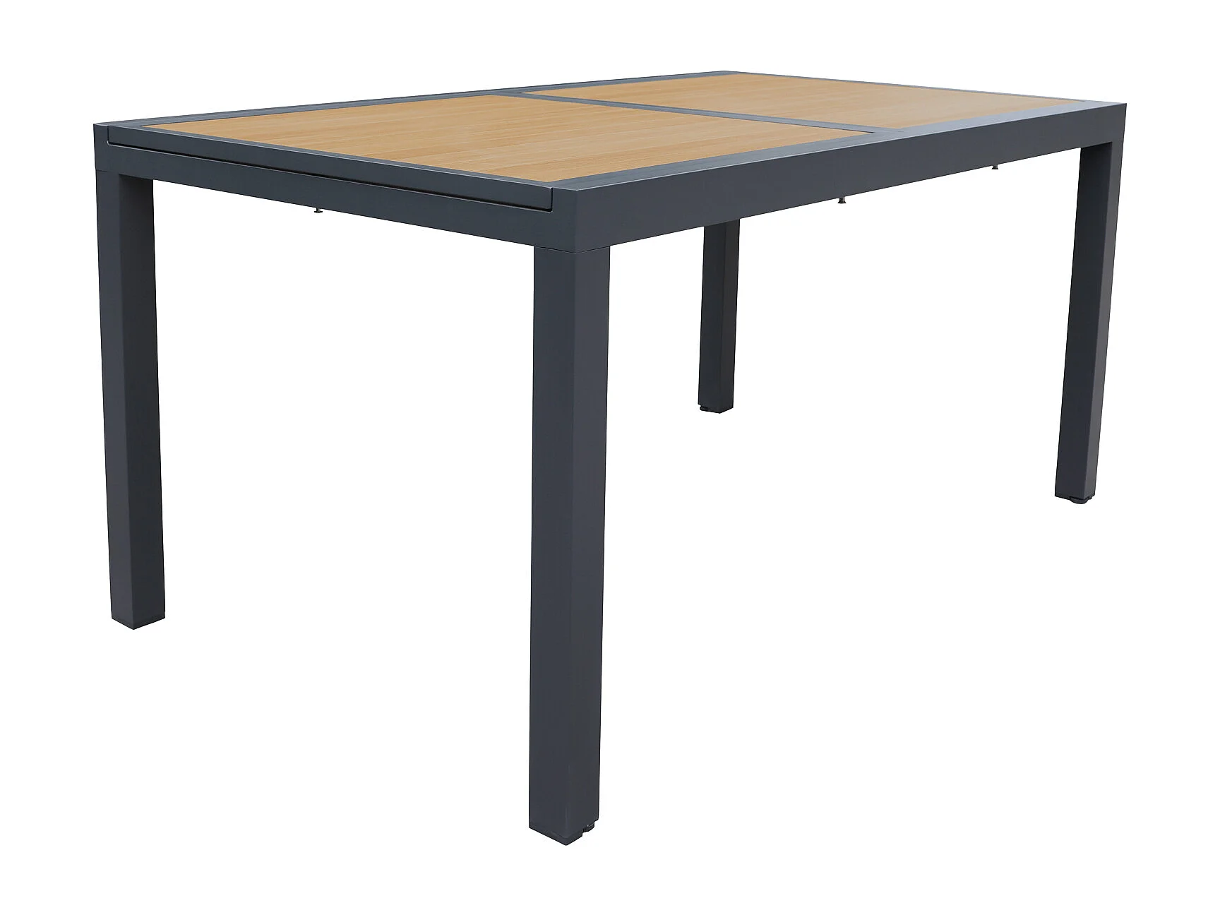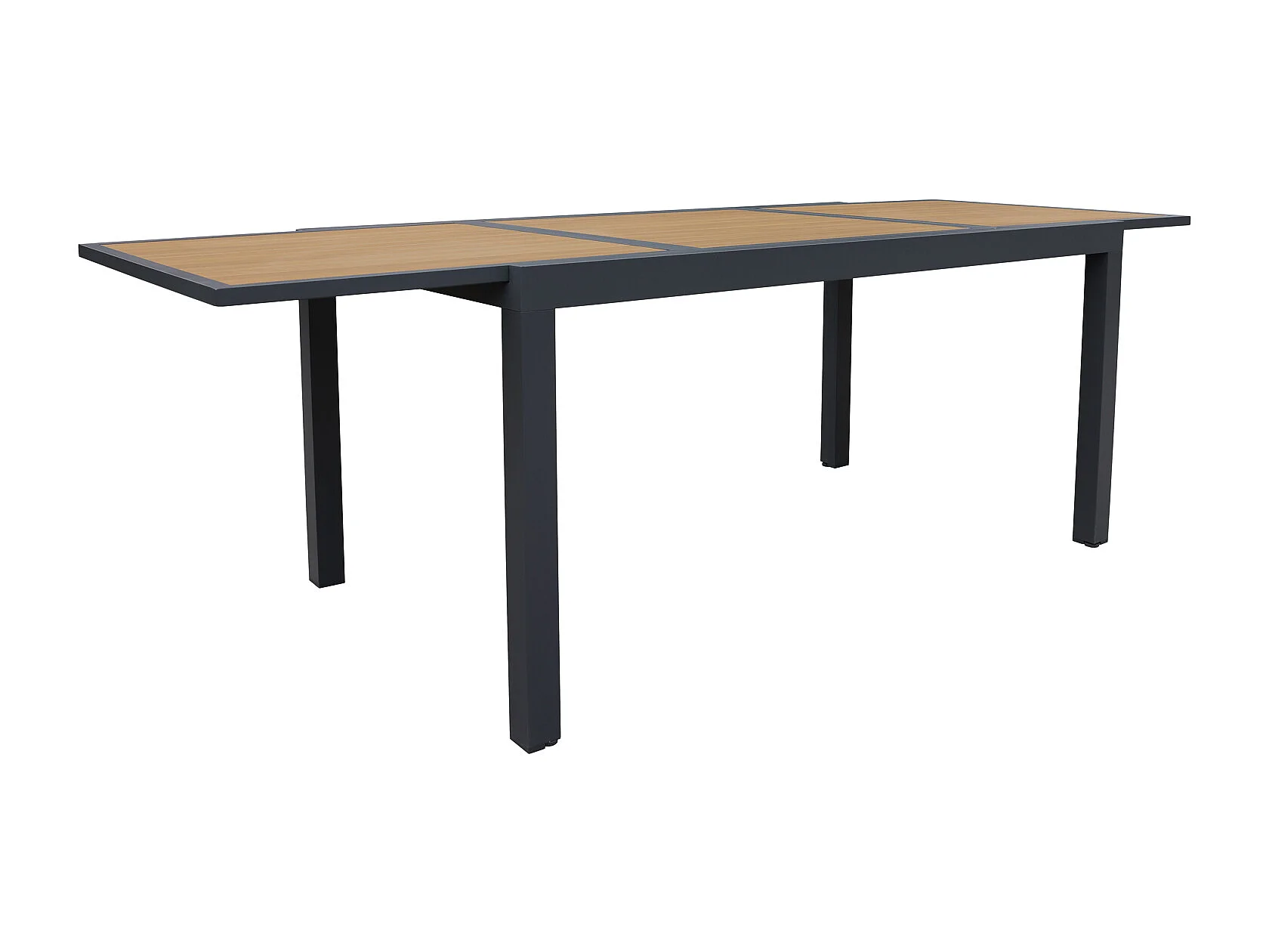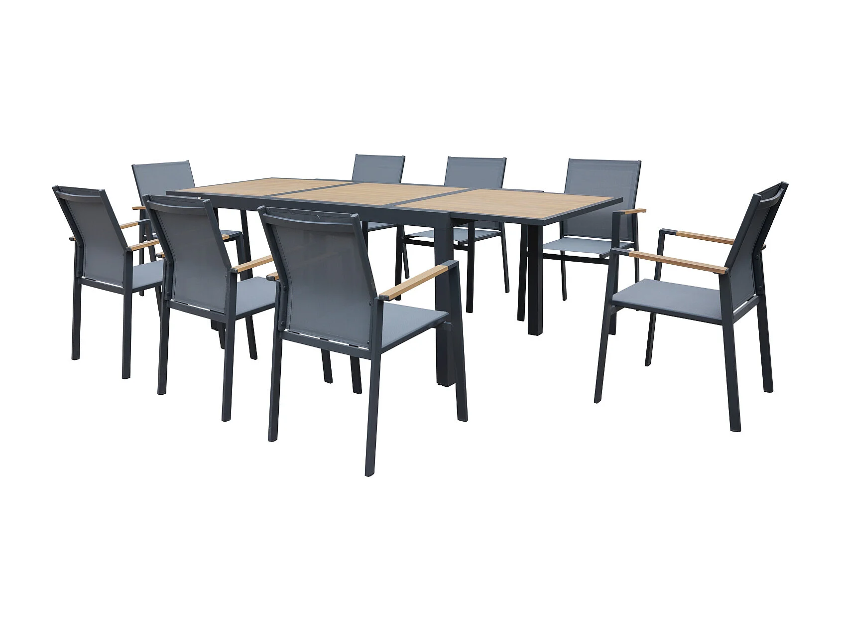 Salon de jardin PALERMO extensible en textilène gris 8 places - aluminium anthracite et effet bois - HAPPY GARDEN
