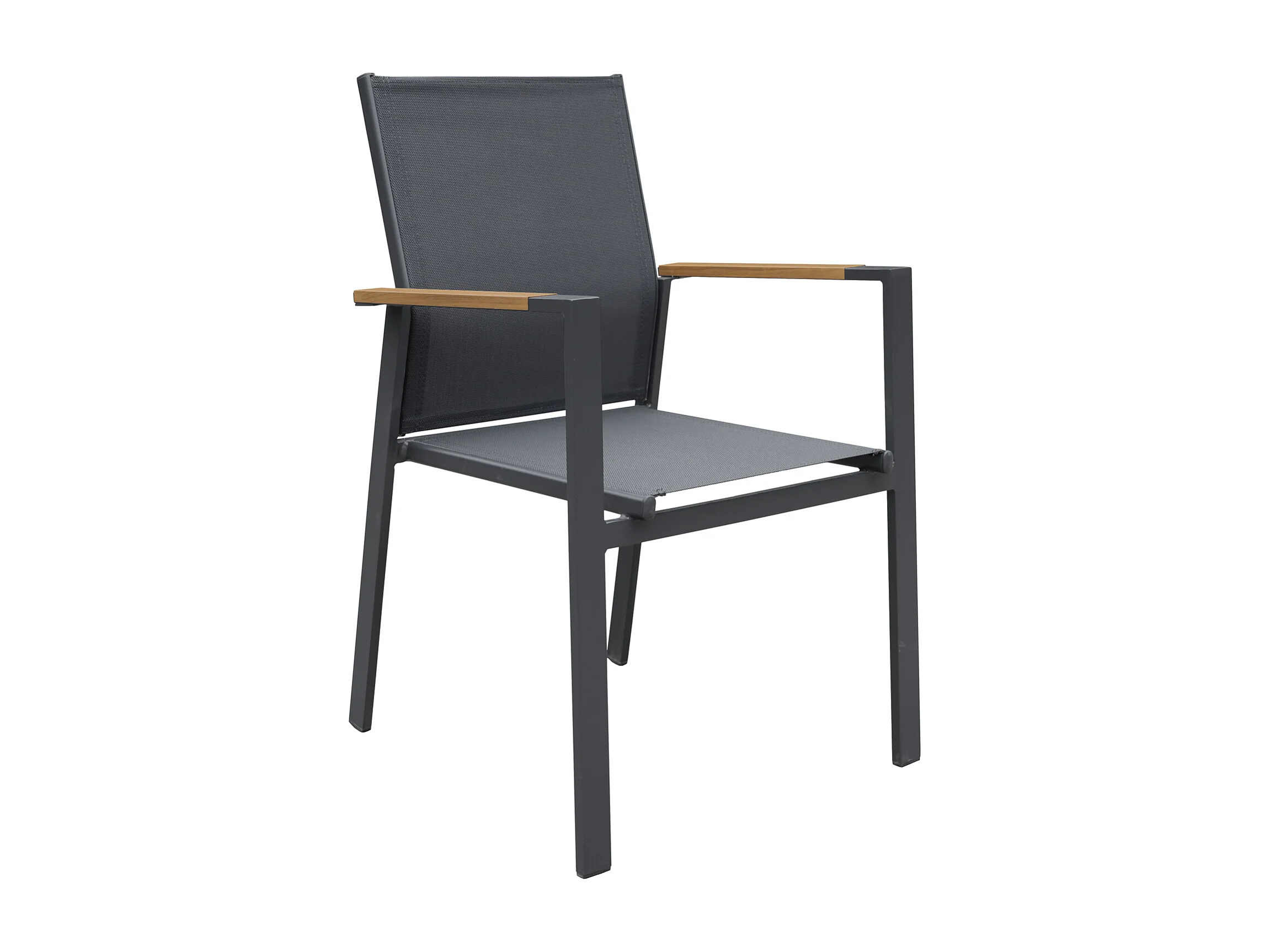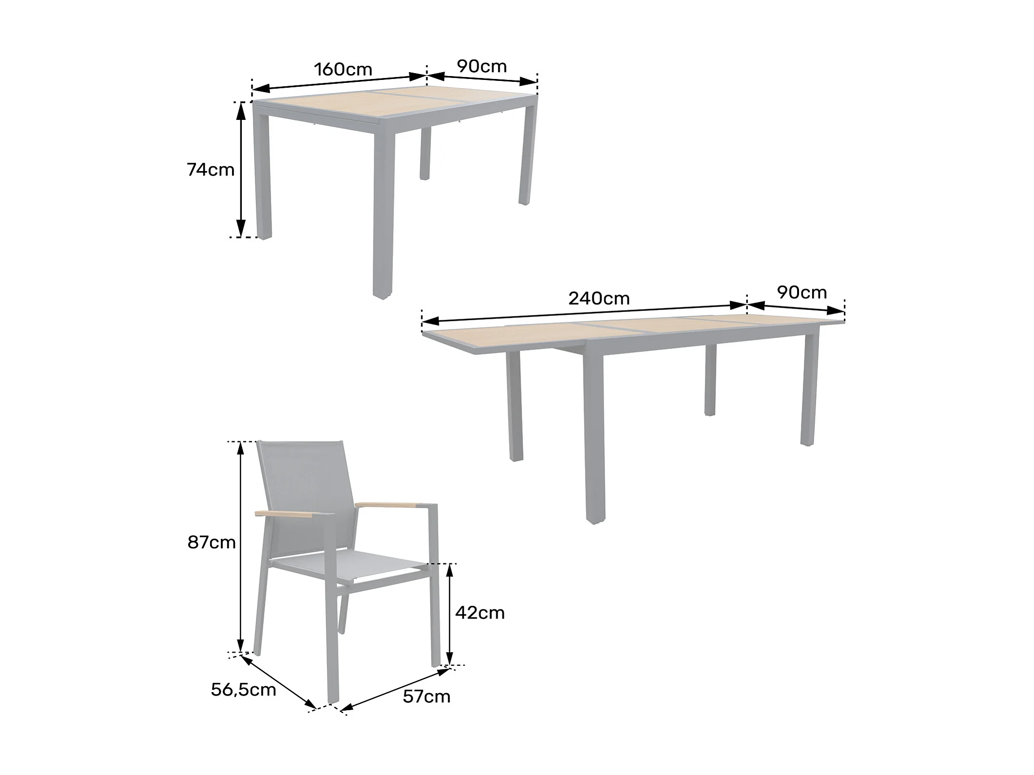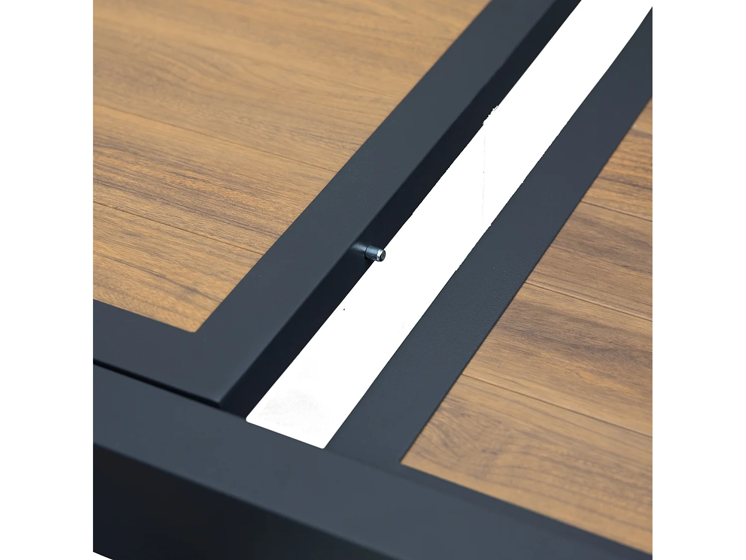 Salon de jardin PALERMO extensible en textilène gris 8 places - aluminium anthracite et effet bois - HAPPY GARDEN