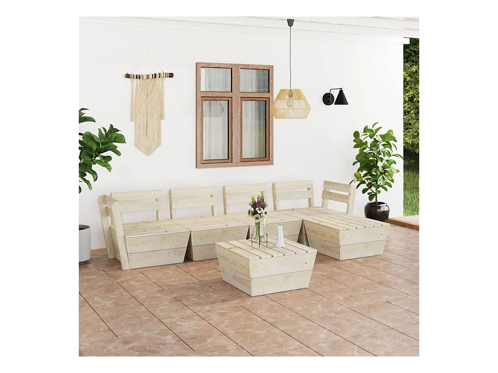 Salon de jardin palette 6 pcs Bois d'épicéa imprégné BE62268